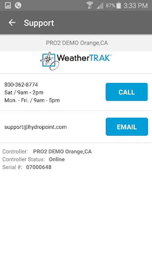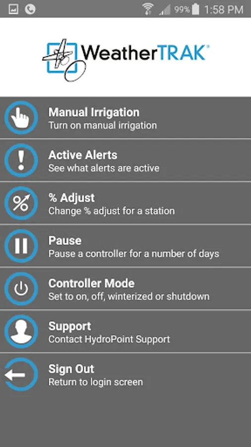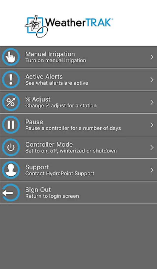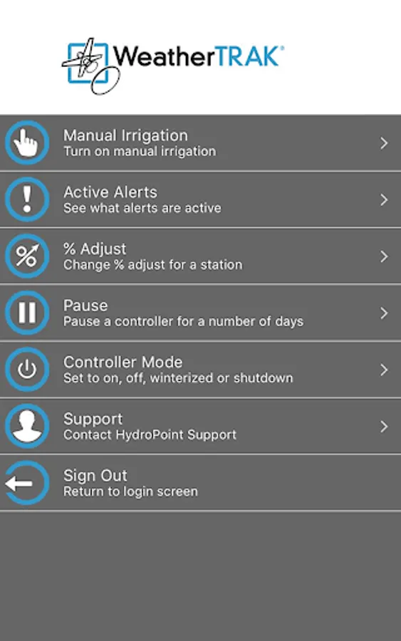 *To use this new app, WeatherTRAK controllers must be running firmware versions 6.6 and higher on ET Pro2, 7.2 and higher on LC and ET Pro3. For questions or to upgrade firmware for free Contact customer Support: support@hydropoint.com