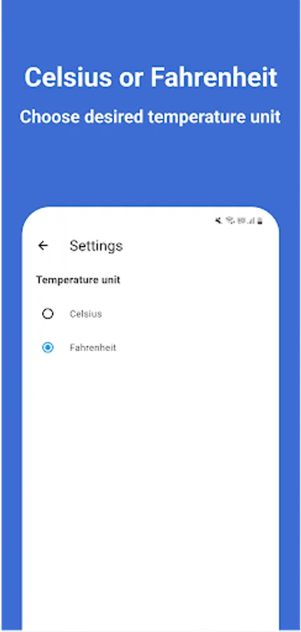 - In Settings, you can choose the desired temperature unit, Celsius or Fahrenheit.