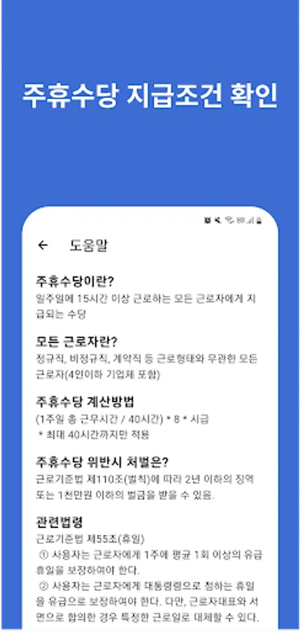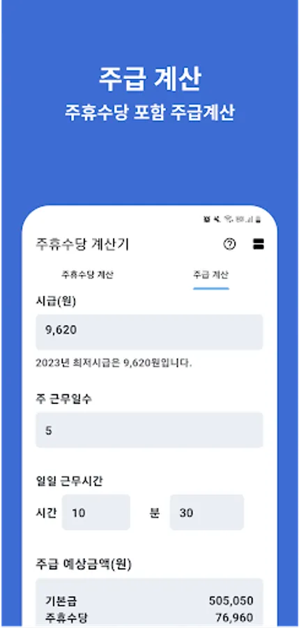 You can check basic pay, weekly holiday pay, and weekly pay with only hourly pay, number of work days per week, and daily work hours.