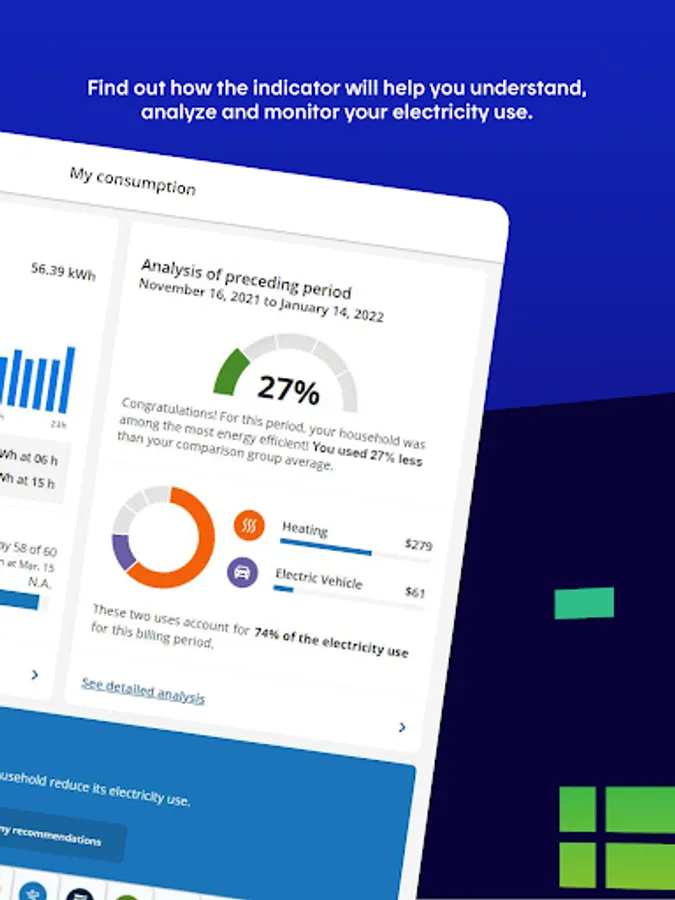 • Get personalized recommendations to reduce your electricity consumption and your bill.