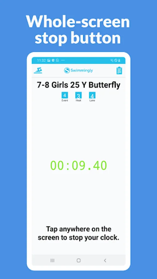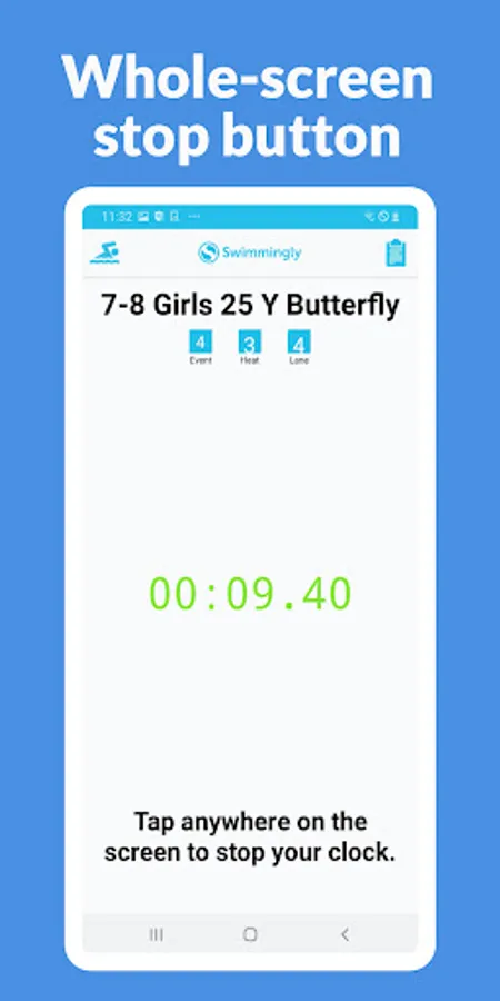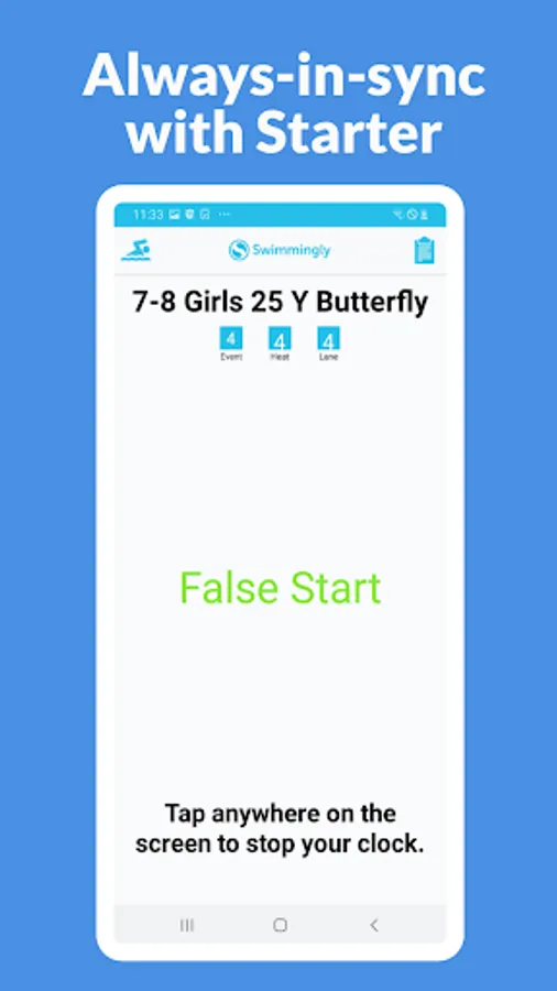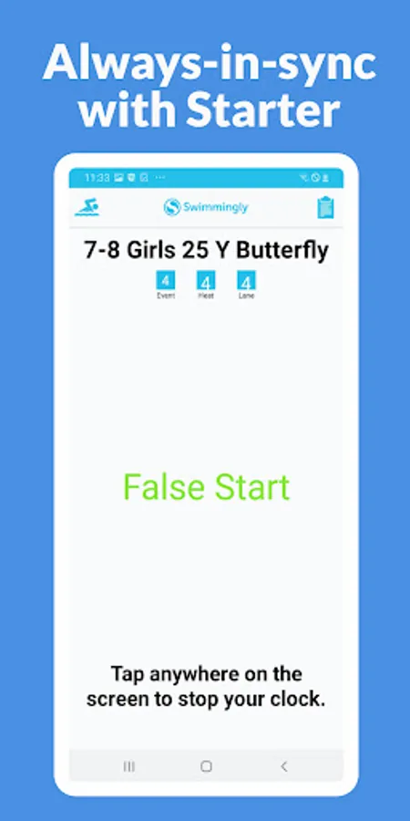 Swimmingly Timer can be used by clubs using Swimmingly as in-app timing/officiating/scoring for their swim meets. The app is cross-platform with (4) roles: Starter, Timers, Judges, and Scorekeeper. The timer role is currently supported on Android.