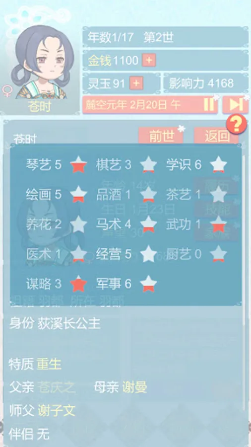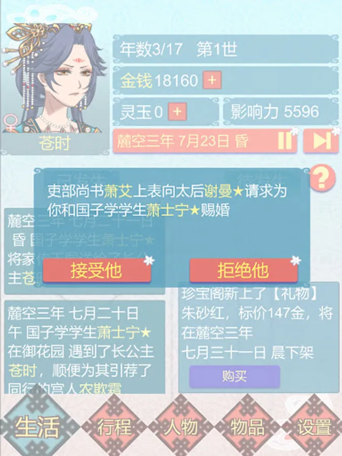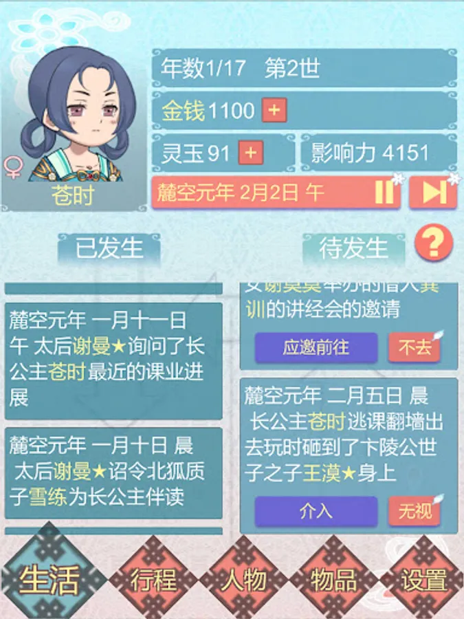 This time you will play the role of the eldest princess of the Qingluan Dynasty who has been reborn countless times from the age of thirteen to thirty, and experience how a noble but no real power princess can gradually gain control in each life method of power, and use the reborn prophet to intervene in the lives of others and change their destiny at will