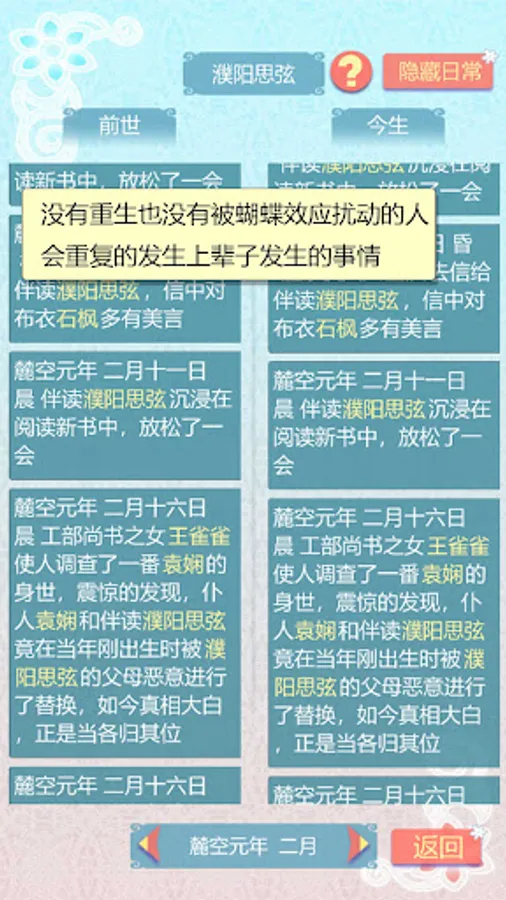 From the second reincarnation, all the things that happened in the previous life and can be known with your ability will be listed in front of you, and you can decide in advance whether to change the direction of things. Of course, due to the butterfly effect, many things may not be exactly the same as in the previous life...