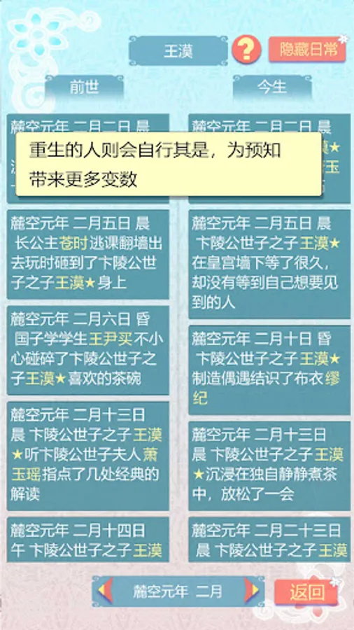 *The man who loved you in the previous life has a chance to be reborn in this life to restore the memory of the previous life. Using props can also force the designated person to be reborn