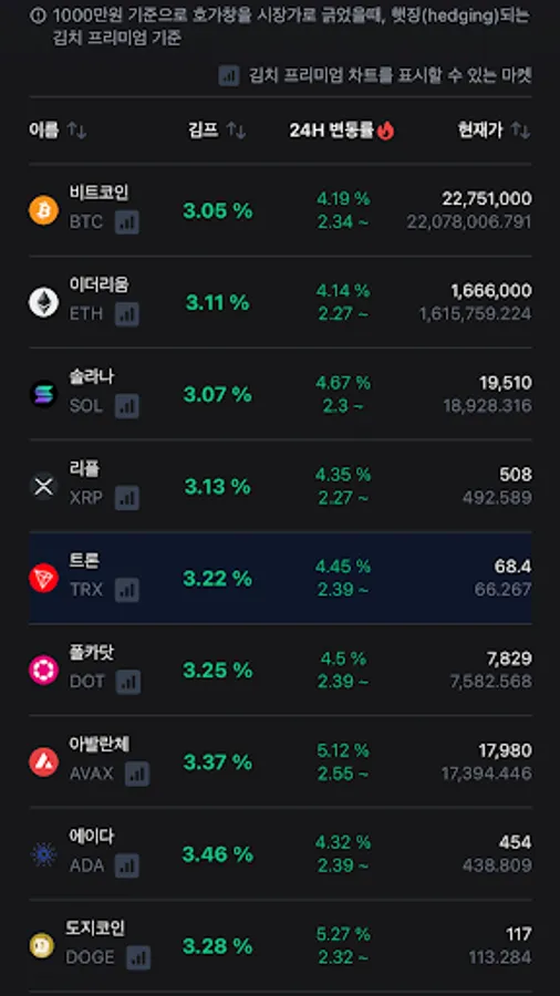 A professional coin community that provides Kimchi Premium and real-time chart price information!