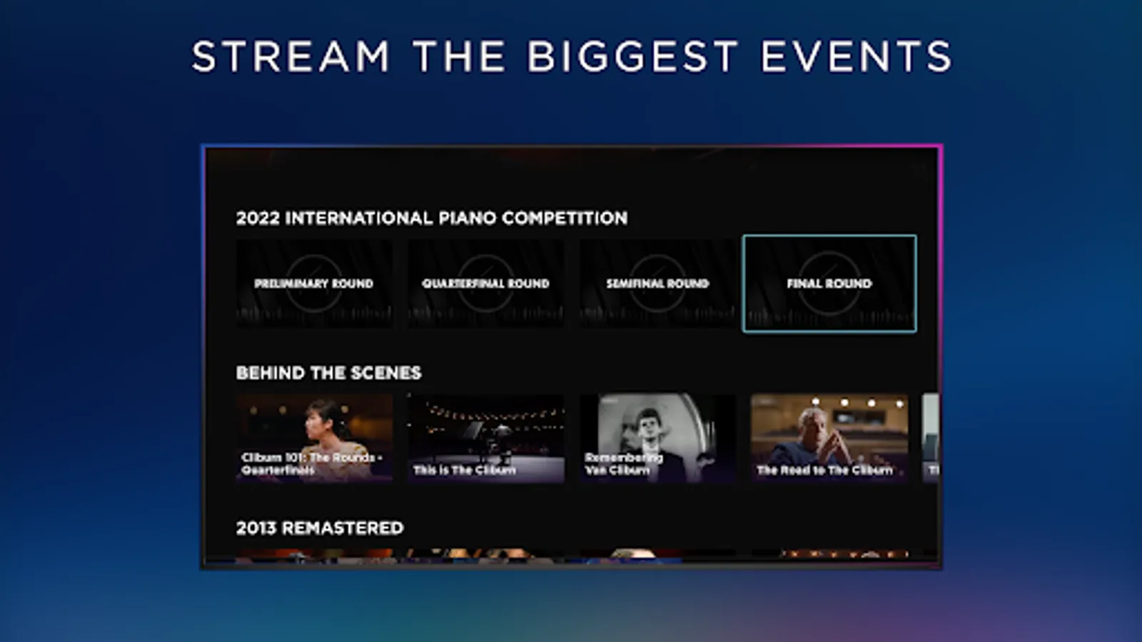 • Exclusive Channels: Subscribe to premium channels, such as our partnership with "The Van Cliburn International Piano Competition," for access to unique and captivating musical events.