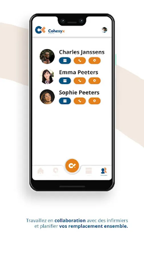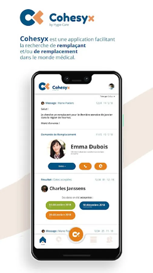 Cohesyx is an application that connects health professionals (nurses, doctors, physiotherapists, etc.) for ephemeral or long-term collaboration by professional category. It is the result of a reflection by home nurses whose need to find replacements is growing.