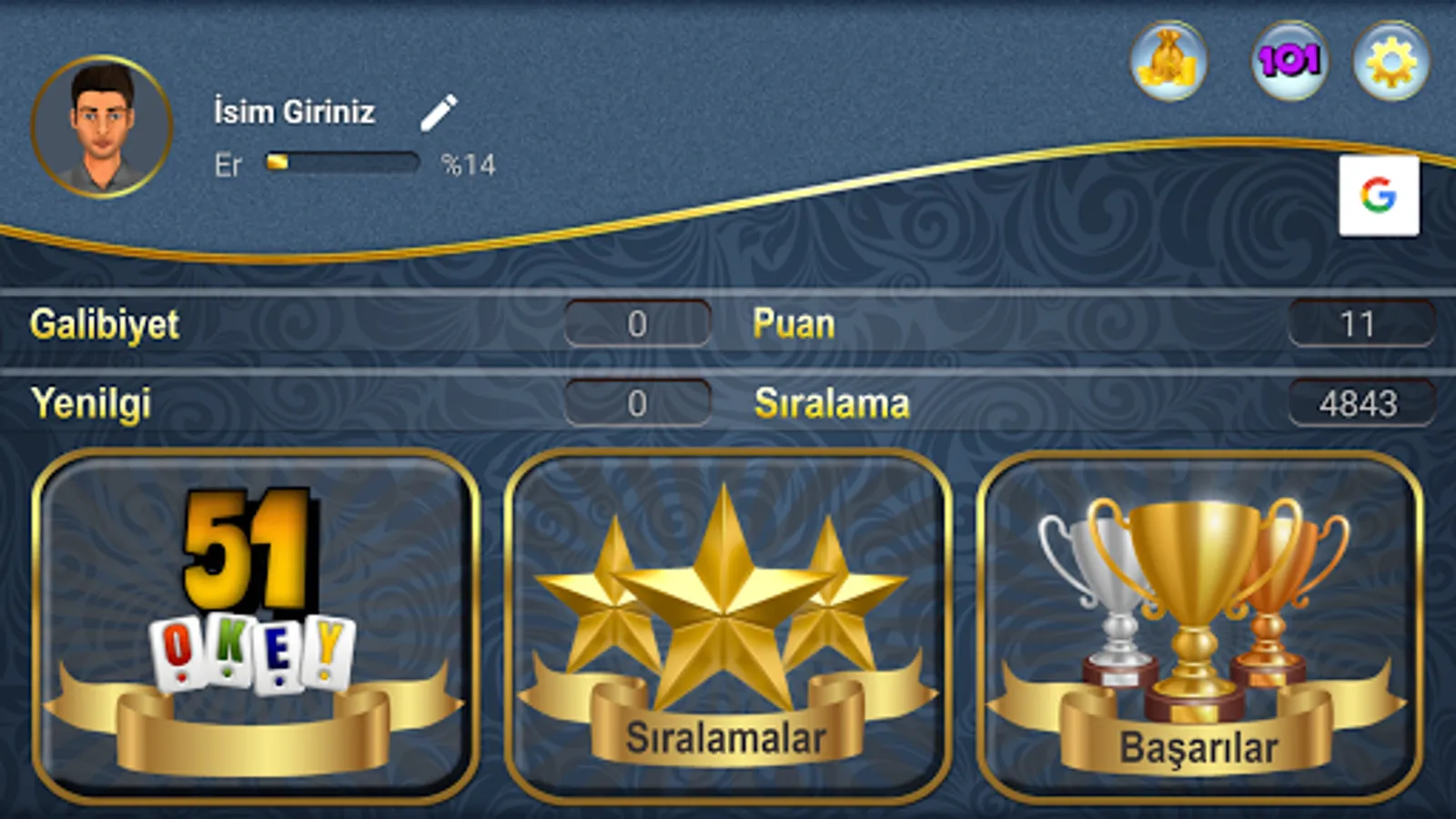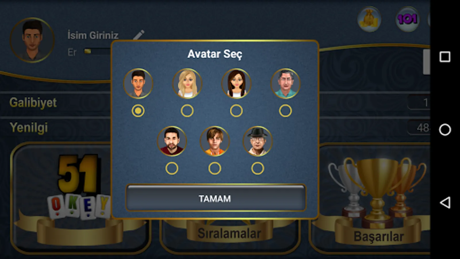 Play 51 Okay. 51 Okey, with its artificial intelligence, rich visual effects, simple and useful interface, download 51 okey games suitable for purpose. Play 51 okey against the computer without internet. Play 51 for free. Have fun everybody.