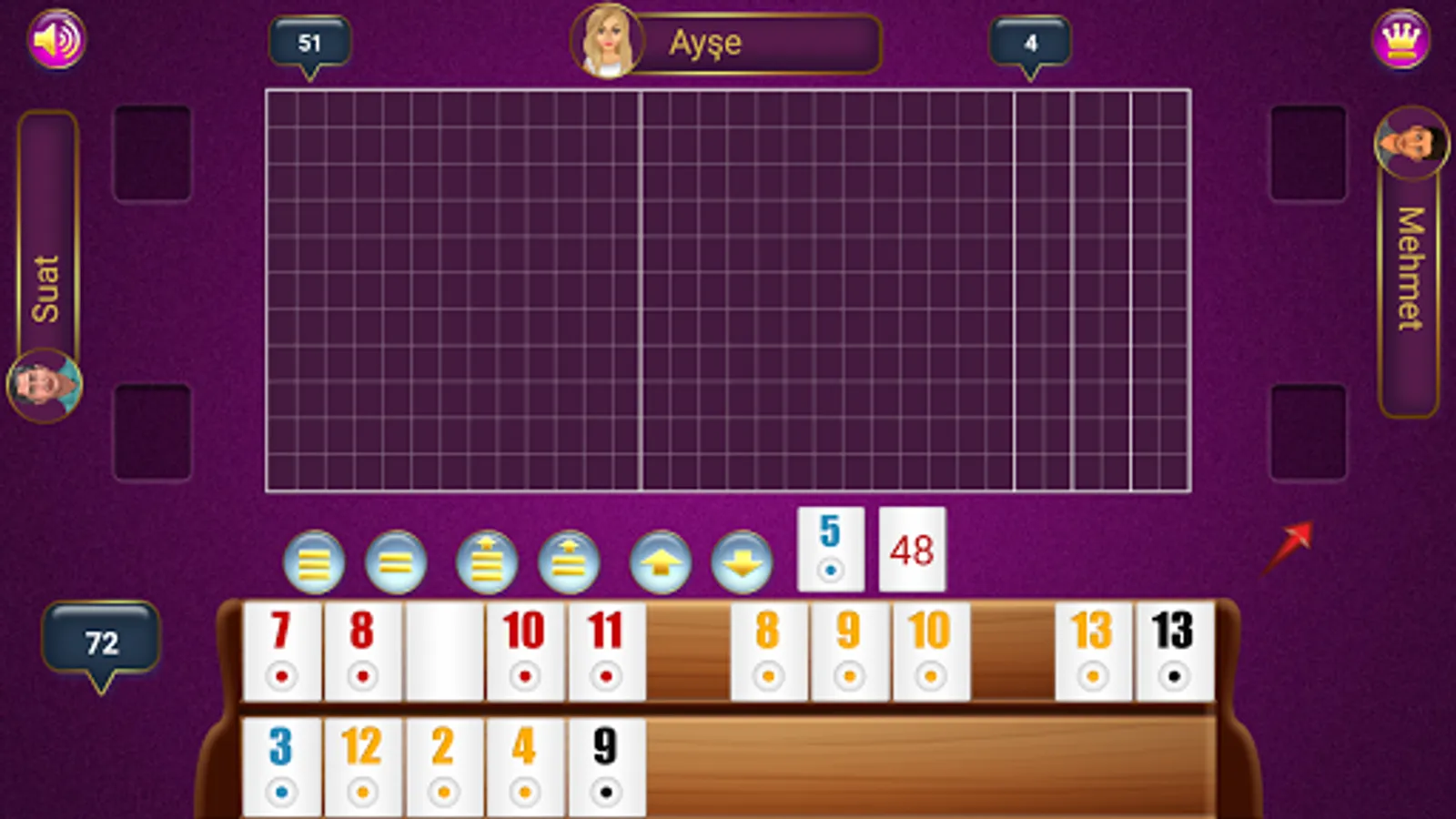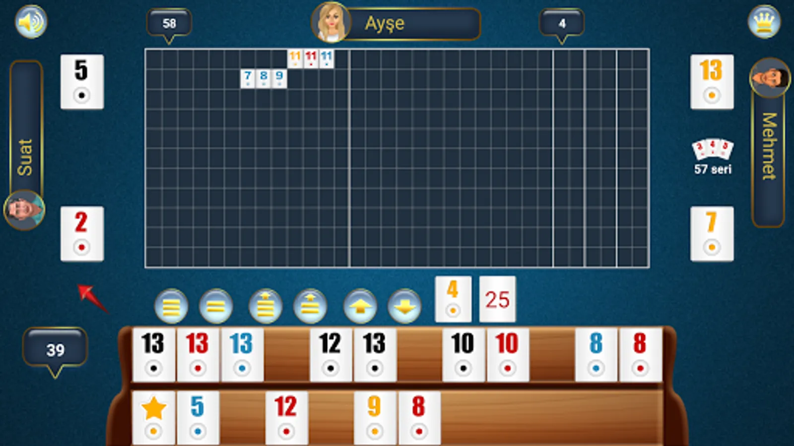 If the sum of the digits of the pairs on your cue is more than or equal to 51, you can place these pairs on the ground. It should be your turn and you should have pulled a stone from the ground or from the side. In this way, after you hit the ground for the first time, you will be shown as a series opened in the game. If you have already spawned, you can spawn any fairy you create in your cue without any conditions. Of course, first of all, it should be your turn and you should have pulled a stone from the ground or from the side. If no one has opened the ground before, the sum of the digit values of the pairs must be 51 and above. If there is someone who opened a series before, the sum of the digit values of the pairs in your cue must be one more than the value opened by that person. For example, the first person to open it with 54. In this case, it can be opened with at least 55. The second opener opened 57. The next person to open can open with at least 58. There must be at least 1 more than the last opened.
