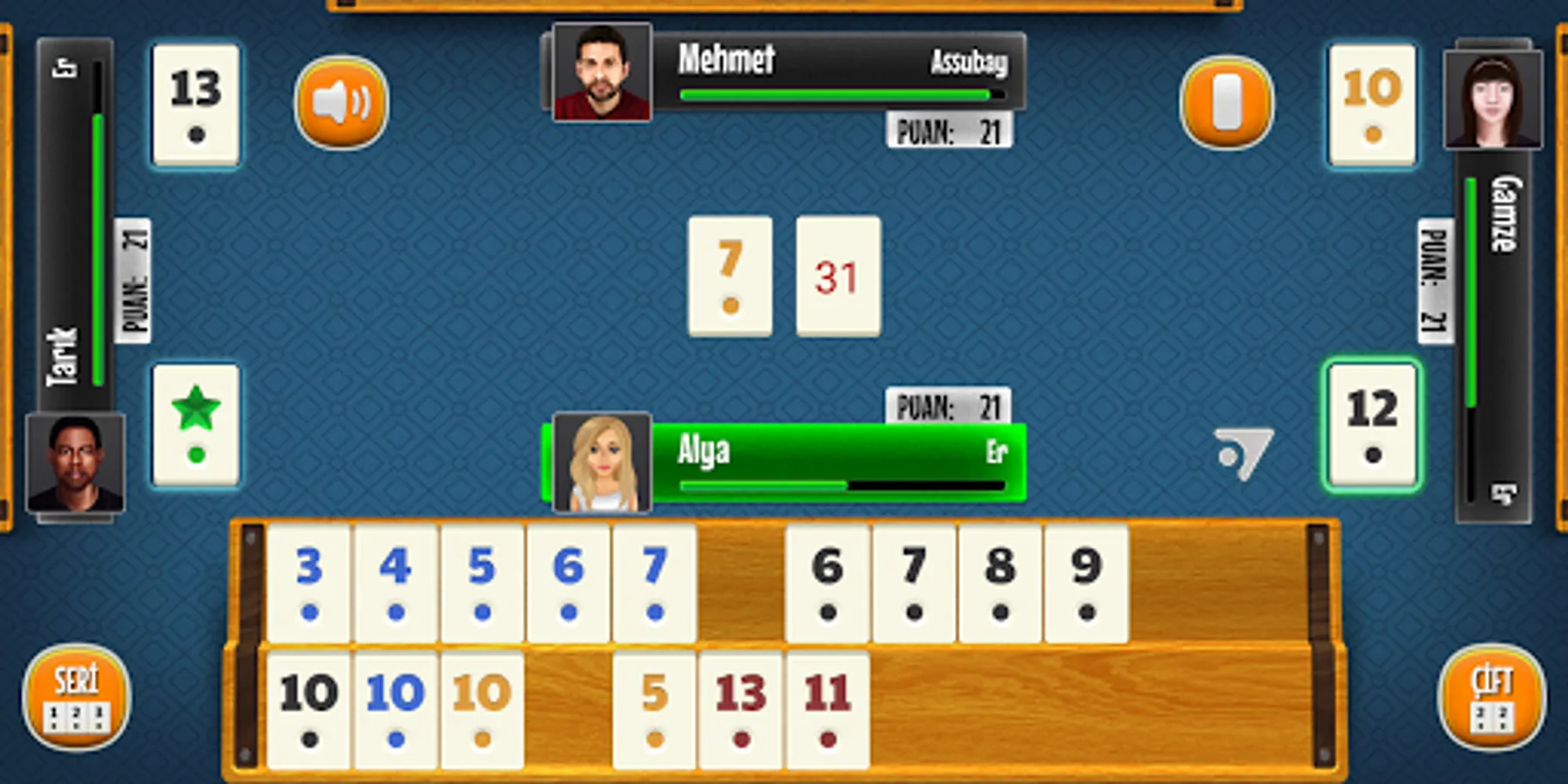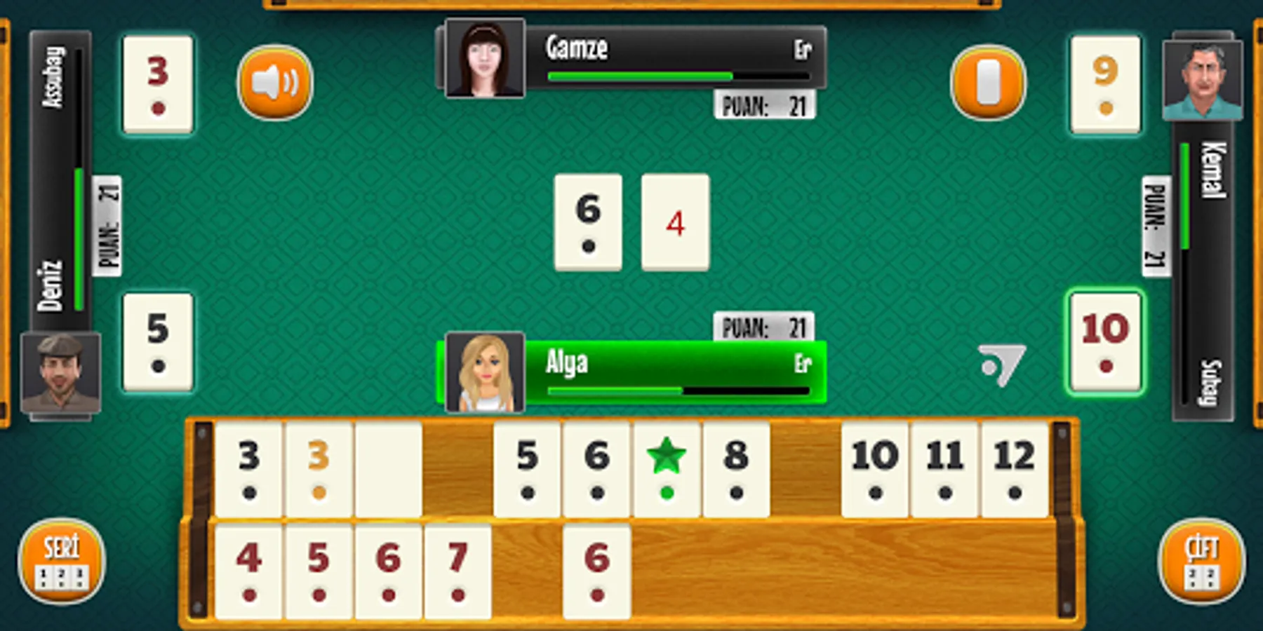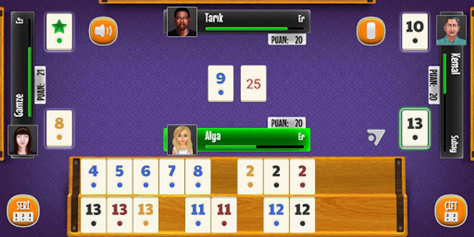 Okey game is played with four players as standard. Okey table contains the name of the cue for arranging the player's tiles. Red, black, blue and green color of the tile has a total of 106 units consisting of two sets of numbers from 1 to 13. There are also two tile which are fake joker.