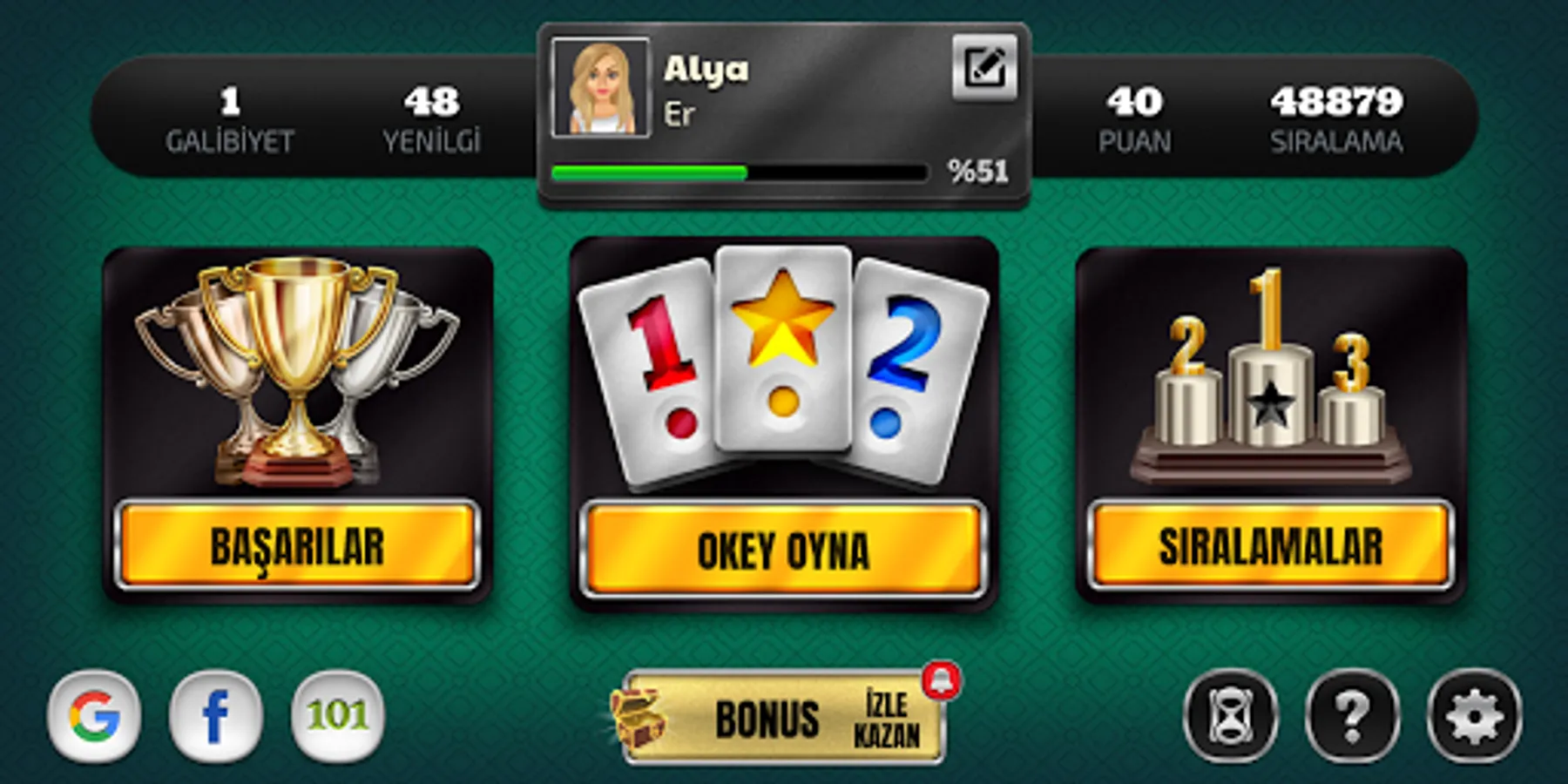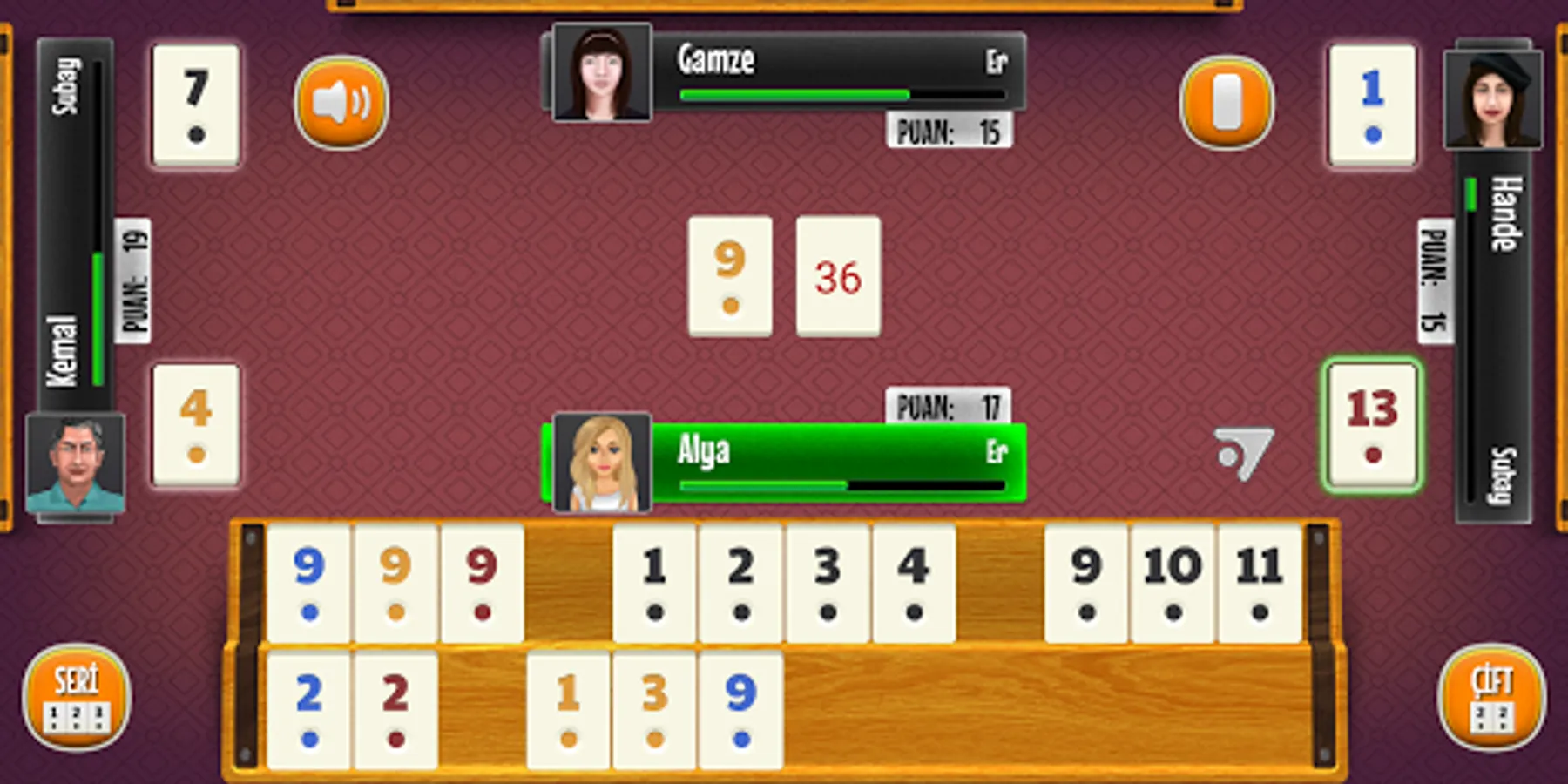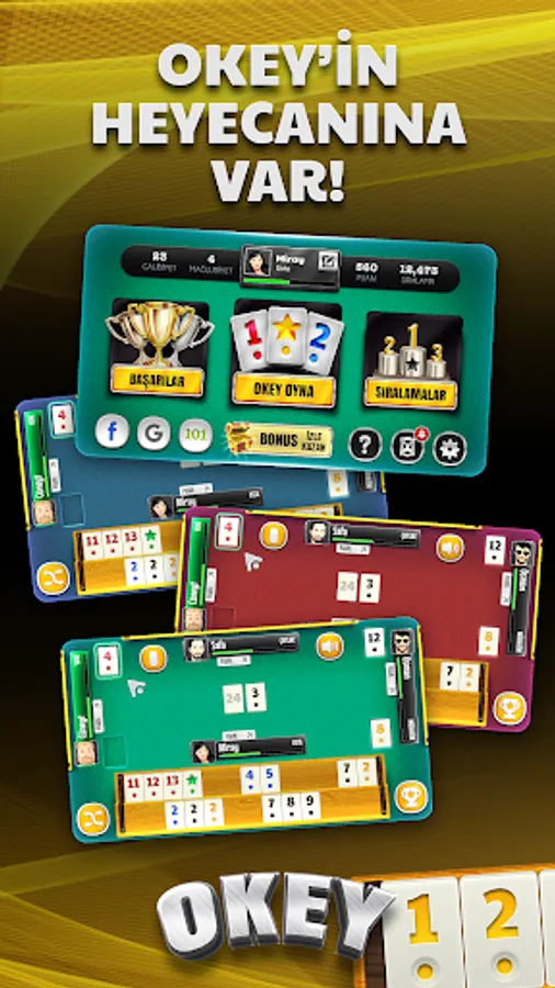 Okey game is played with four players as standard. Okey table contains the name of the cue for arranging the player's tiles. Red, black, blue and green color of the tile has a total of 106 units consisting of two sets of numbers from 1 to 13. There are also two tile which are fake joker.