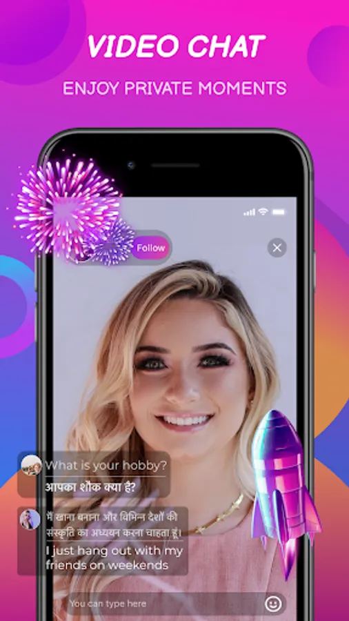 Kola connects you with people from all over the world for immersive video chats. Experience the joy of making friends globally, with smooth real-time video chat and interactive effects that bring your friends closer, no matter the distance.