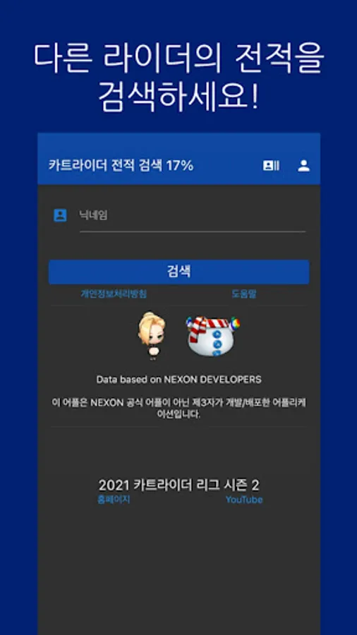 * This application relies on the API provided by Nexon to provide information, and the service may be restricted or suspended depending on the state of the API or the circumstances of the developer. *