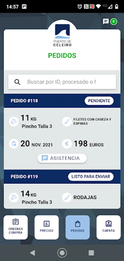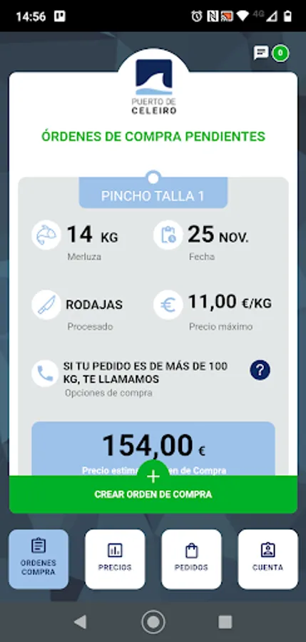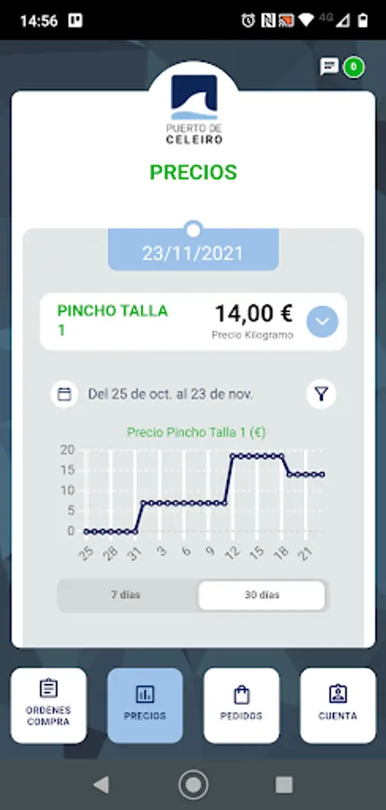 With our new app you will be able to interact directly with the Puerto de Celeiro fish market in the most practical and intuitive way, having access at all times to the evolution of daily prices, your complete order history, their processing status and much more.