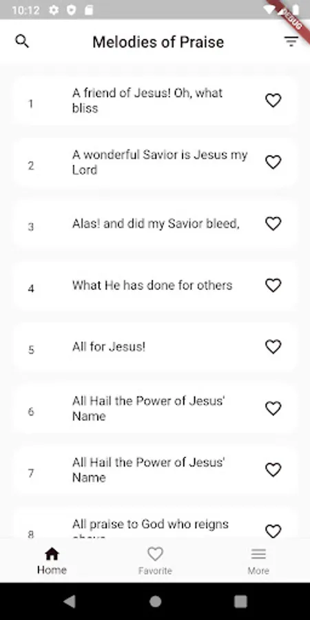 -You can add a particular hymn you like to the "Favourite" tab so that it can appear as your favourite hymn and you can still remove hymns that are no longer your favourite from the favourite tab.