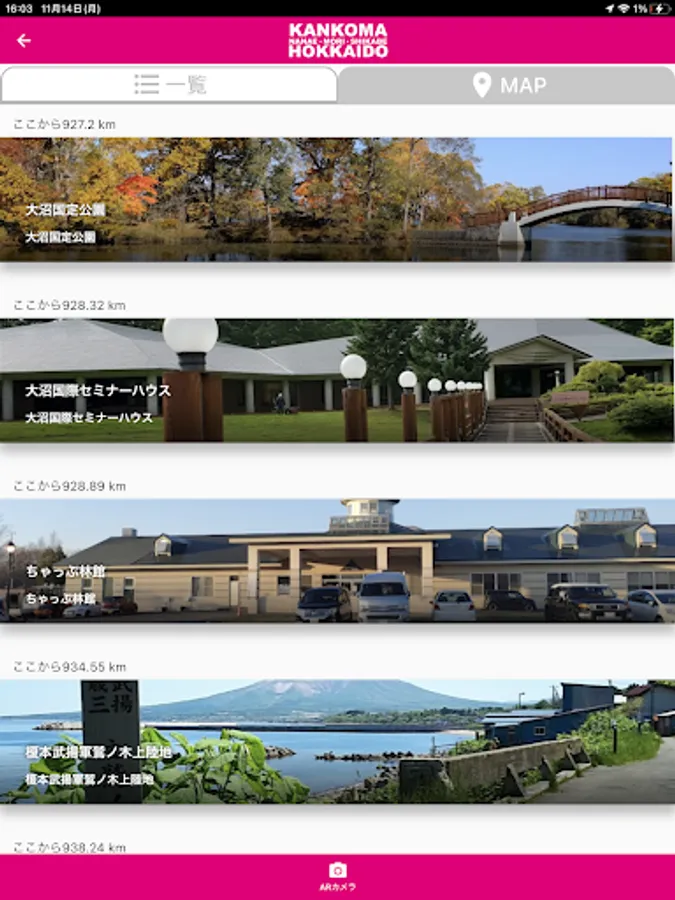 This is an app that introduces sightseeing spots in Shikabe Town, Nanae Town, and Mori Town and allows you to enjoy AR. Enjoy various menus with the Kankoma app.