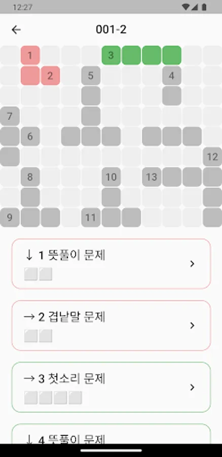 One crossword puzzle consists of about 15 crossword quizzes, and if all problems are solved, the crossword is complete.