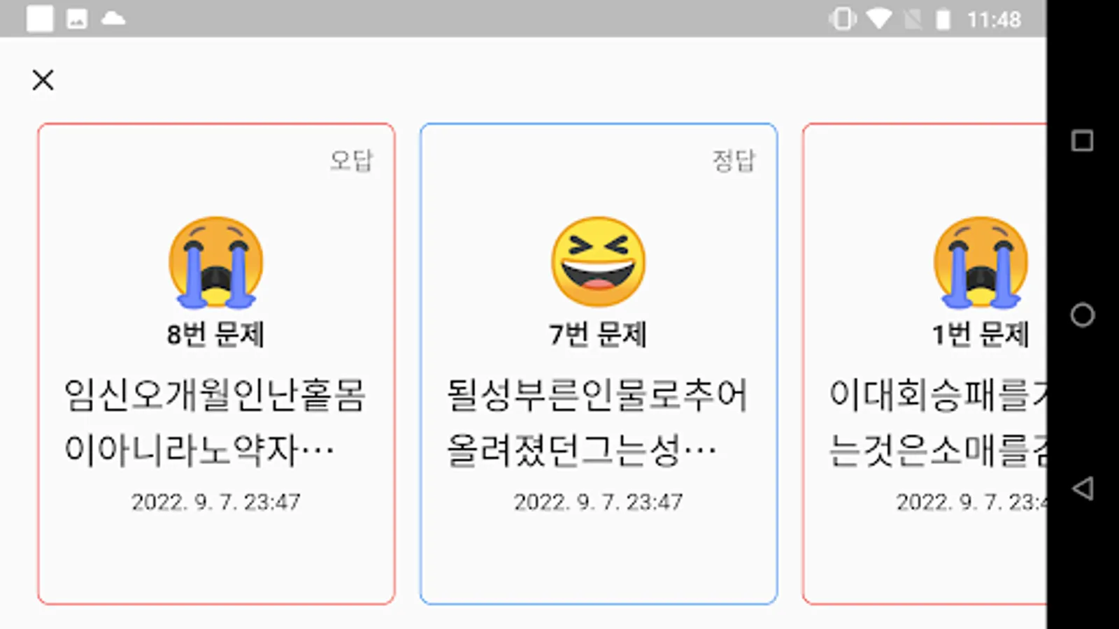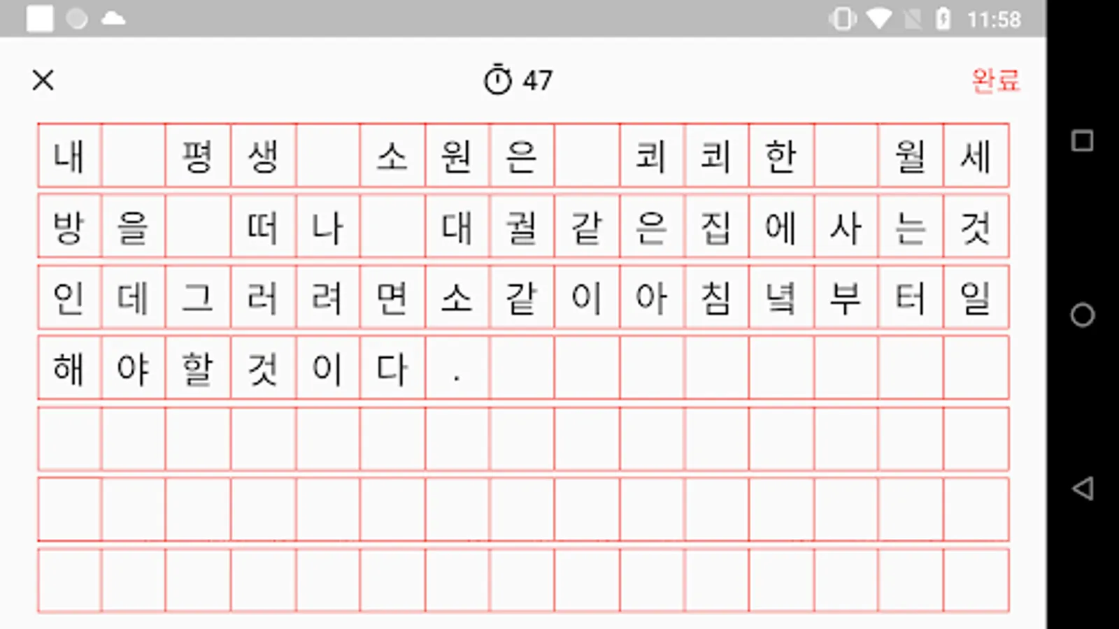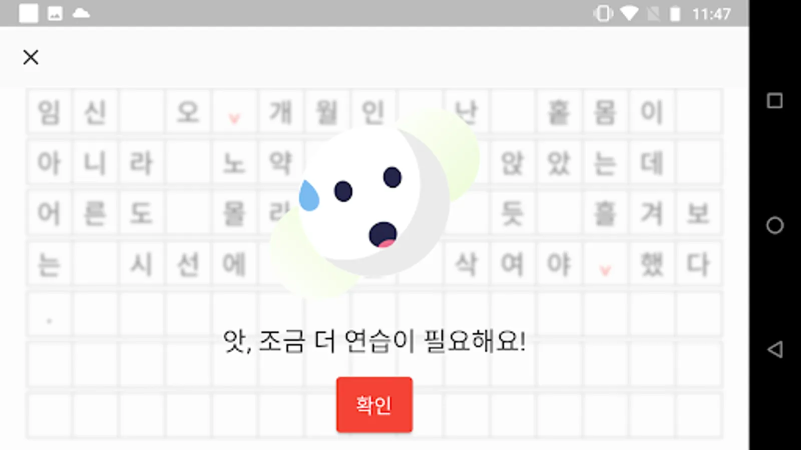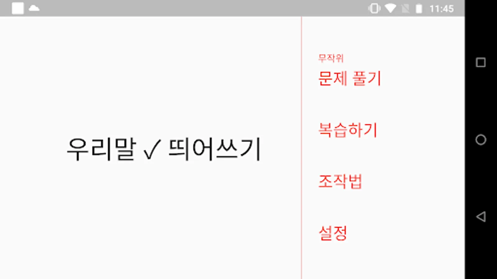 The Korean word spacing app is an app that allows you to learn Korean spelling by solving Hangul word spacing problems that boast extreme difficulty.