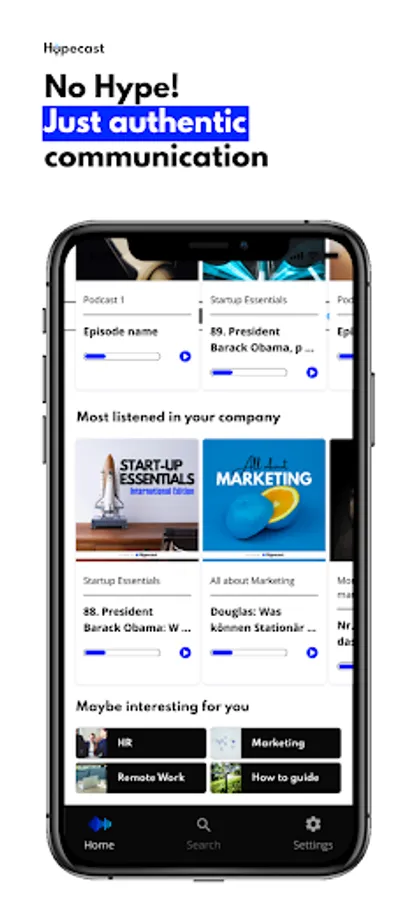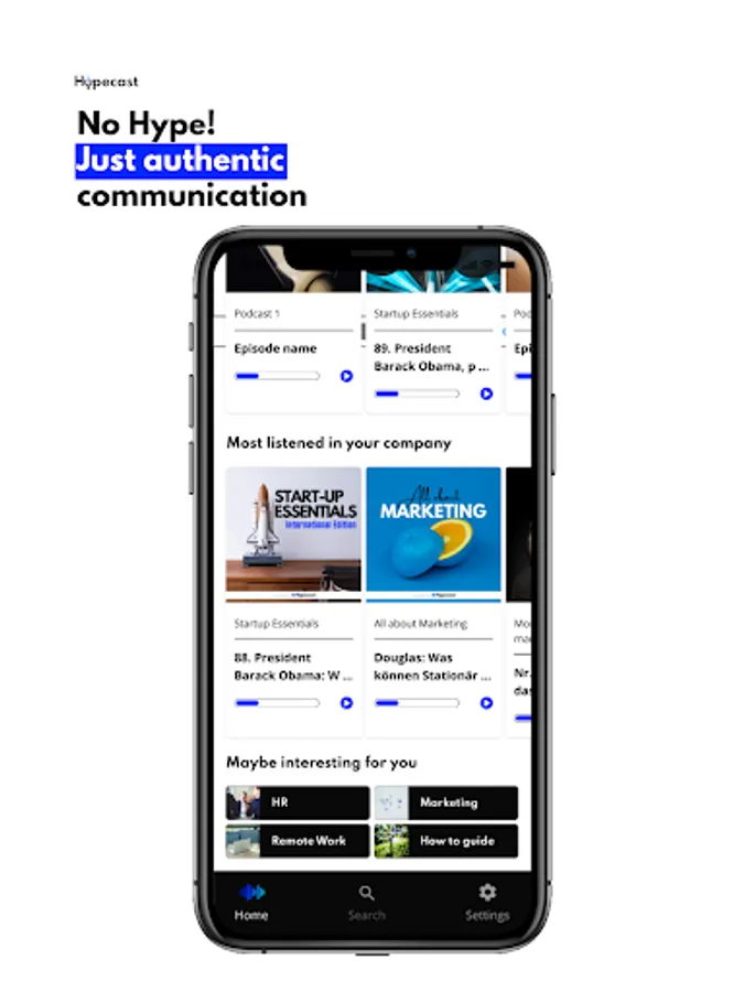 HYPECAST is the all-in-one podcast platform for teams and organizations. Share your internal podcasts easily and securely within your teams, with your partners and your B2B customers - authentically, quickly and asynchronously!