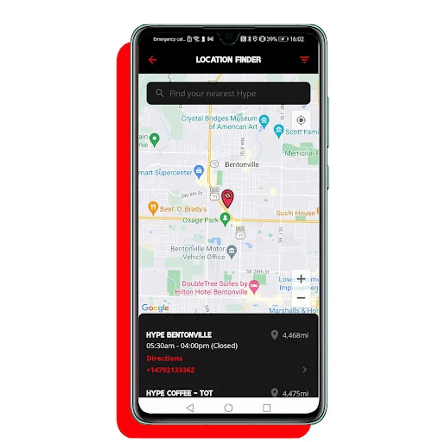 You can now download our app to earn stamps and other rewards when you use our Order to Go journey in the app. You can also keep up with the latest events, news, and seasonal drinks on offer. Refer a Friend to earn a reward and use the map function to locate your nearest Hype Coffee!