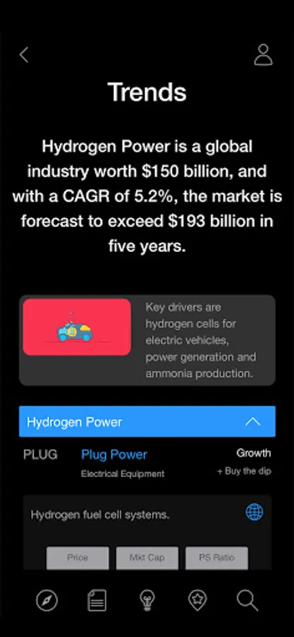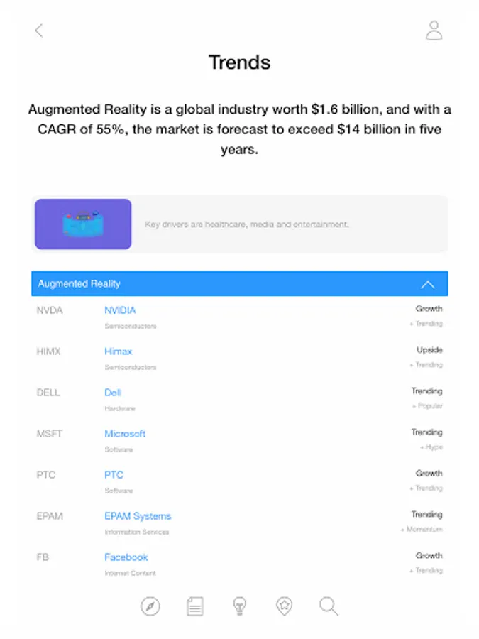 • Top Trends – Stocks associated with growth trends that are outperforming the market.