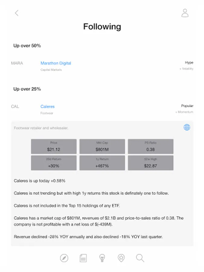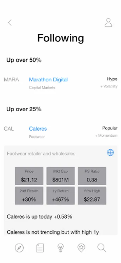 • Most Followed - Stocks followed the most on Hypehunch that are outperforming the market.