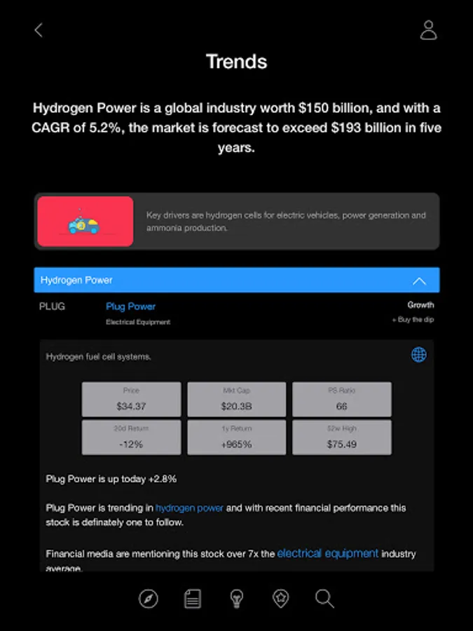 • Trends - Our algorithms identify trending topics through money flow analysis. They also provide relationships between stocks in the same industry and segment - and in addition, which segments and stocks are receiving the biggest monetary inflows.