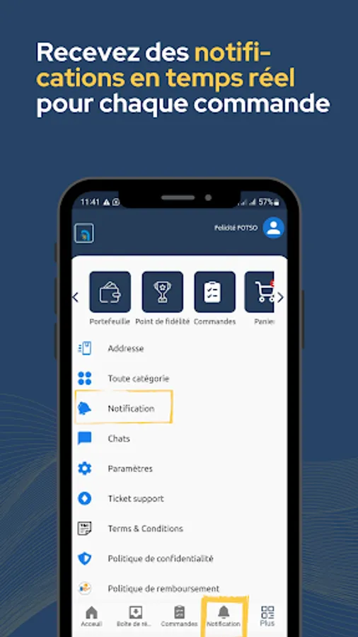 - Suivez facilement vos commandes et recevez des notifications en temps réel