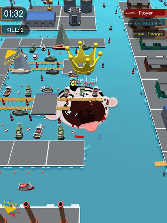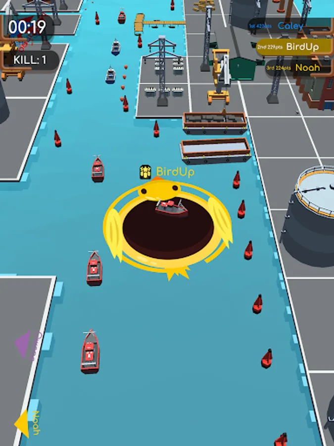 There is every kind of building to consume on this big water city! From lifebouys to boats, yacht docks to nuclear plants. Just drag your finger to lead your swirl and gulp those yummy buildings down. Swirl sucks anything inside and leaves no survivors. As you eat buildings like a vacuum, your swirl will grow. So keep eating more!