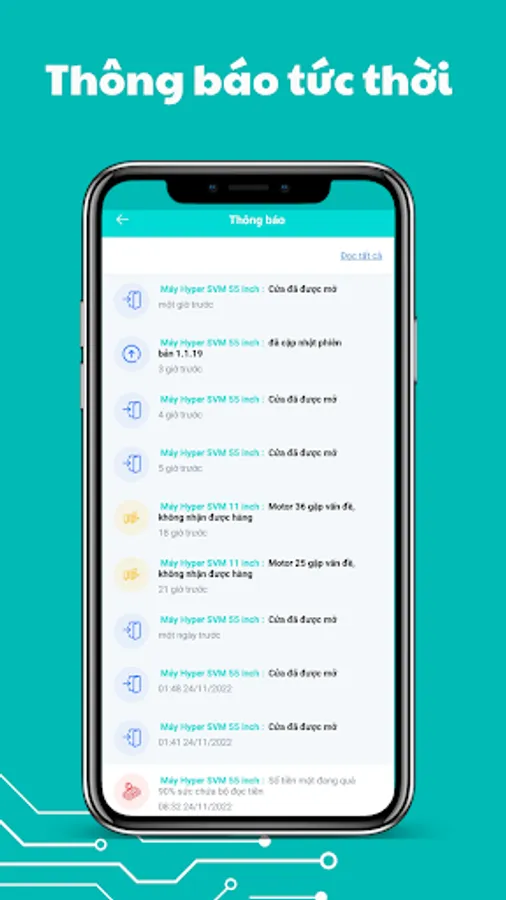 Notify when there is any abnormal problem suddenly occurs on the machine such as machine error, out of stock, full money, inventory, ...