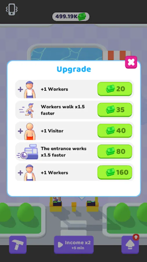 Welcome to the Aquapark Idle game, the ultimate idle tycoon game where you can build and manage your own water park empire. Start small with just one employee by expanding your waterpark limits with thrilling water slides, wave pools, and more. As an idle tycoon game, you can passively earn income and even reinvest to further expand your empire.