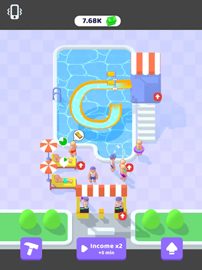 Challenge yourself trying to avoid long queues with angry people - it’s your chance to upgrade all your management skills. Make your aquapark business work the way you want it to! Dive into the game now and build, expand, and manage your own water park empire. Create unforgettable experiences for your guests and watch the entire business grow while you’re relaxing!