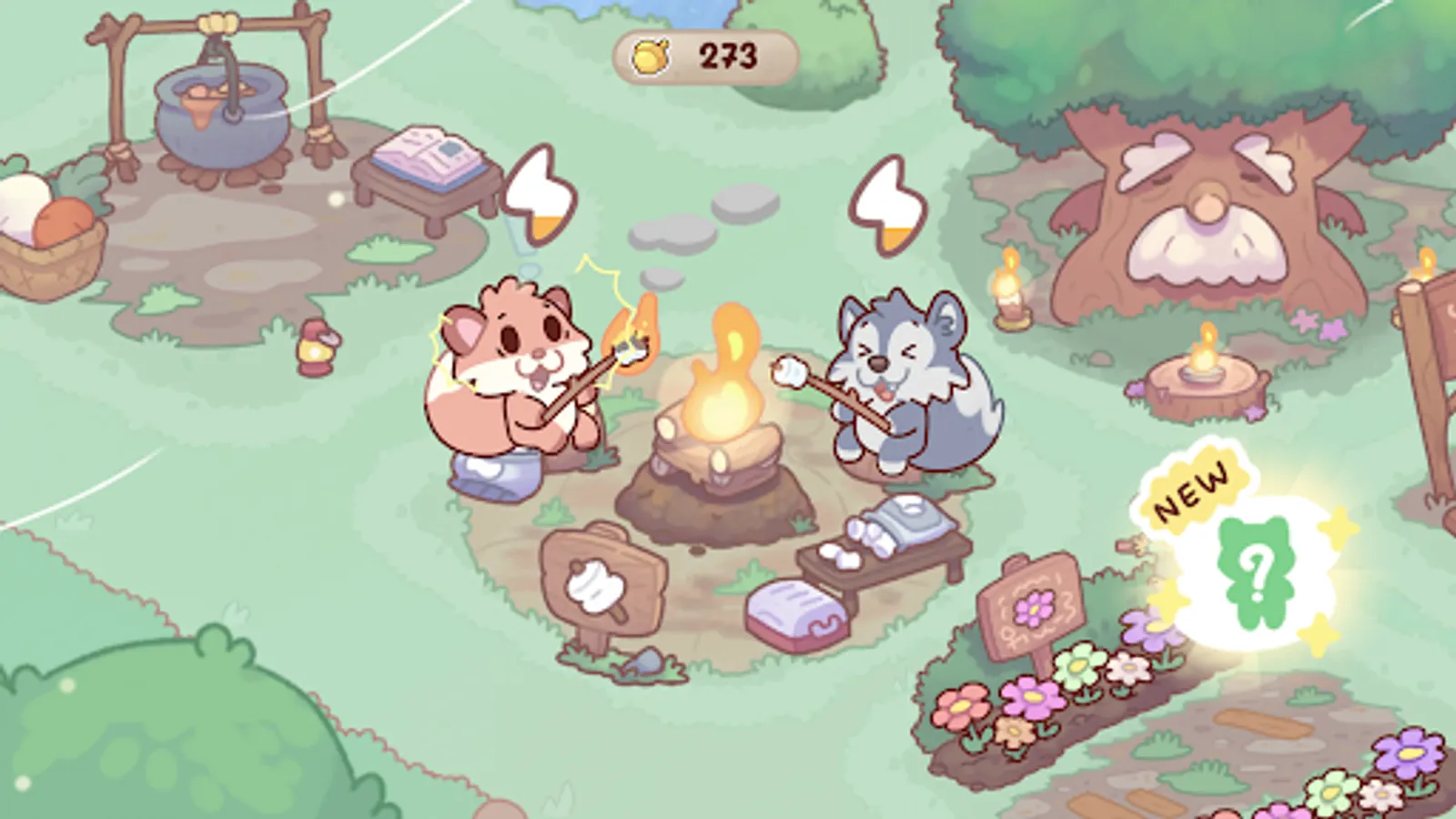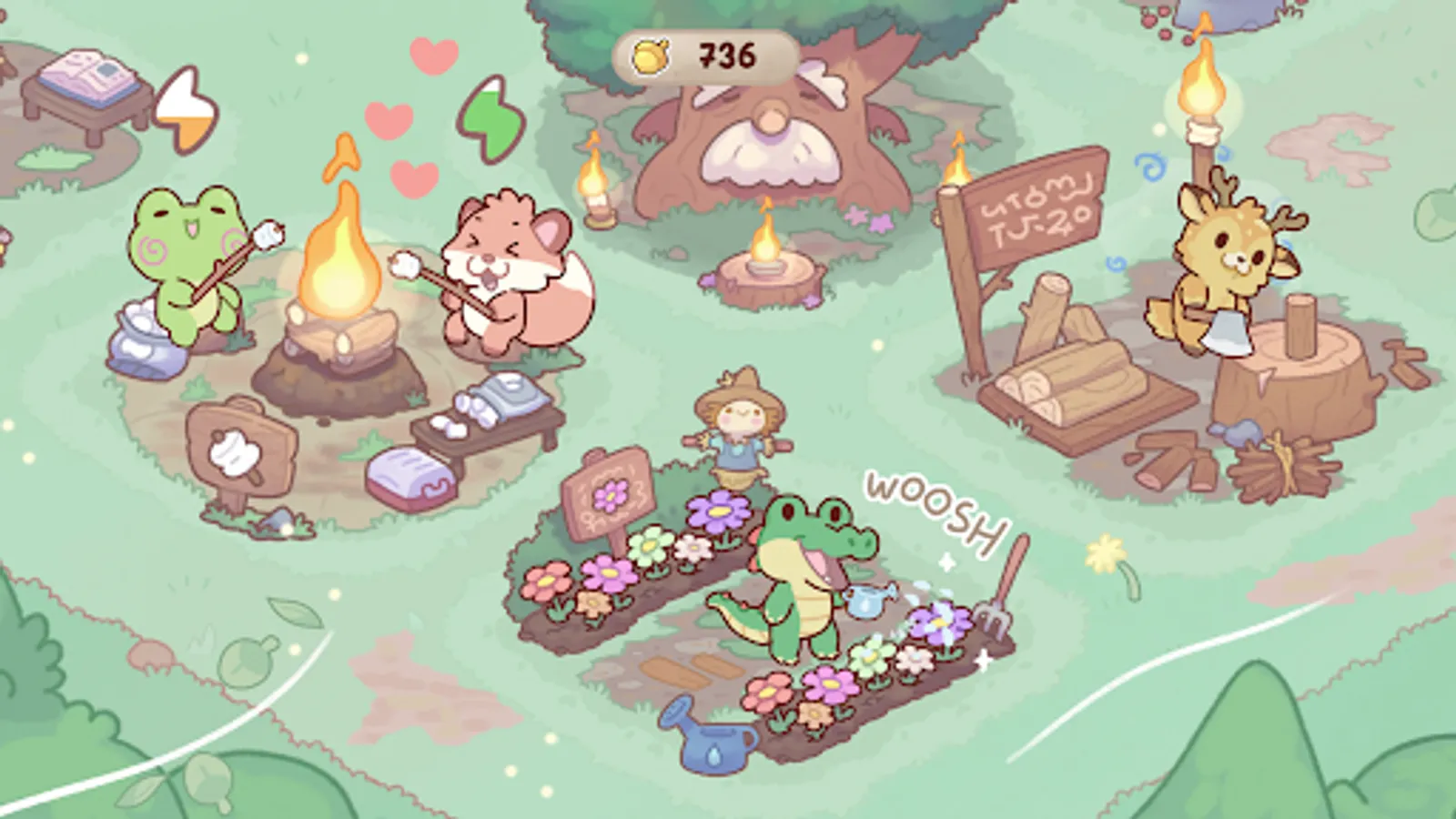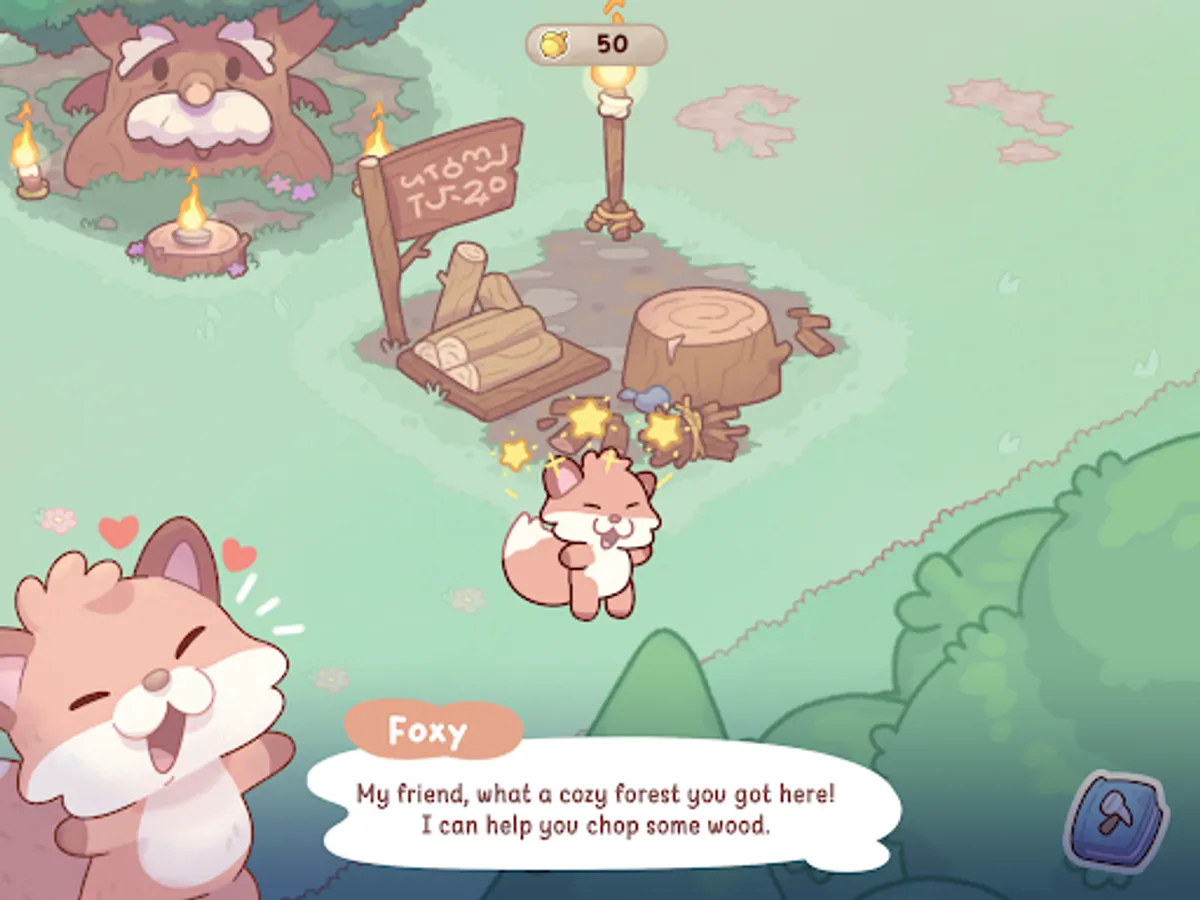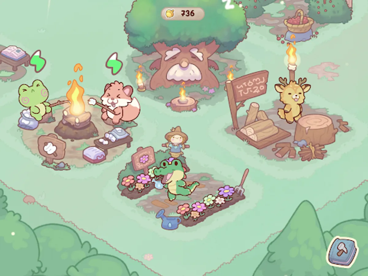 - Collect golden acorns to expand and welcome more animals.