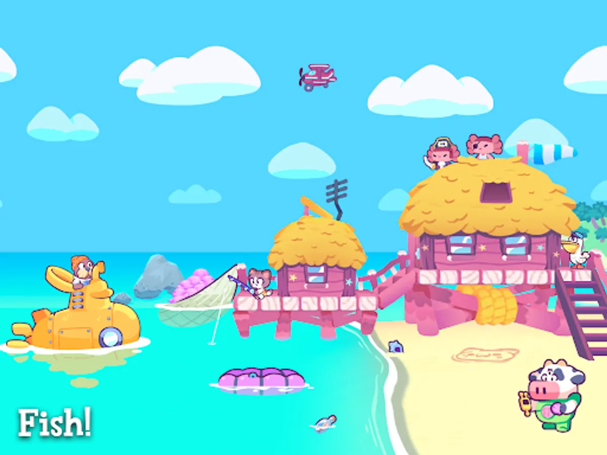 Collect precious shells - the island's currency - as they wash up on the beach or catch them in your trusty fishing net. Yay passive income! Who needs dollars and coins... shells are the real treasure. Decide whether to spend your hard earned shells on new decorations for your shack, a luxurious massage at the spa, or a "special" beverage (hint: there's alcohol) from one smooth talking French frog.