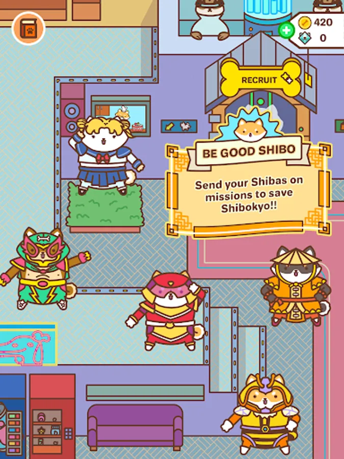 Go fetch! Recover treasures from big nasties in missions and use them to decorate your Shibase!