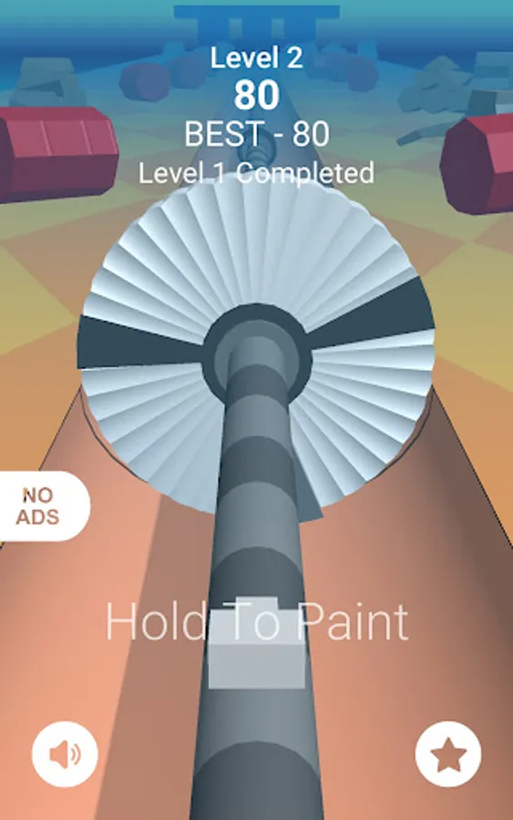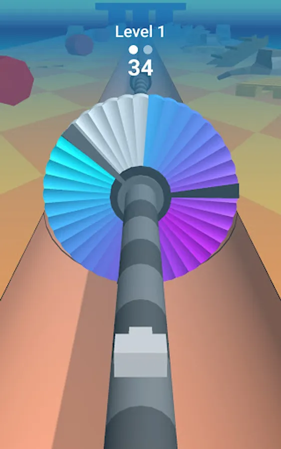 Keep shooting the ball to paint the rotating object while avoiding the barriers for level clearing.