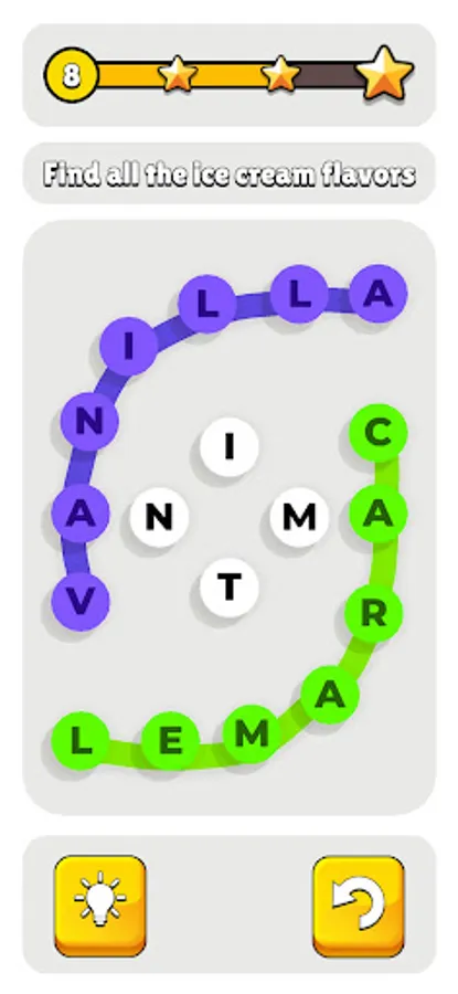 A relaxing word search game with a juicy control.