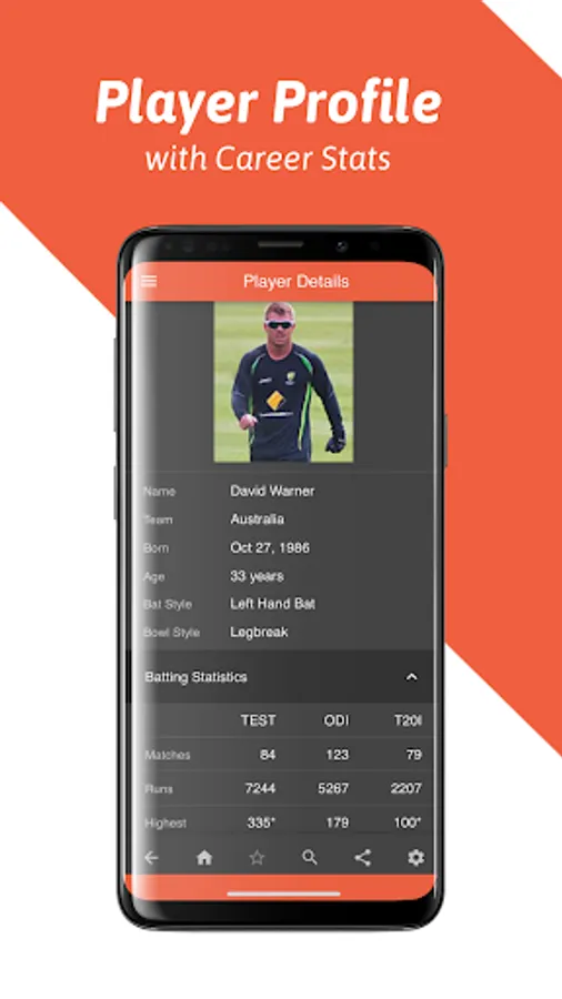 - Batting, bowling and fielding stats of any cricket player along with the player’s profile
