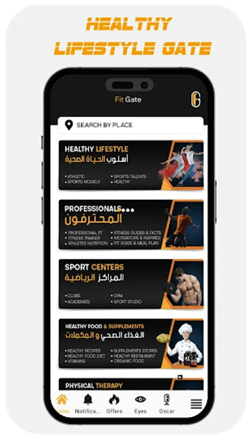 FitGate is a fitness app that allows users to discover Sport centers, Personal trainers, Healthy food, lifestyle, Supplements, Sport Stores, Events, Therapy and Nutrition specialists nearby.