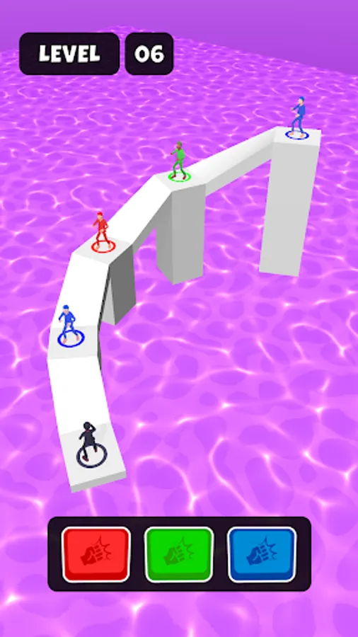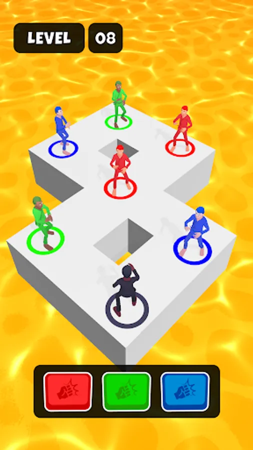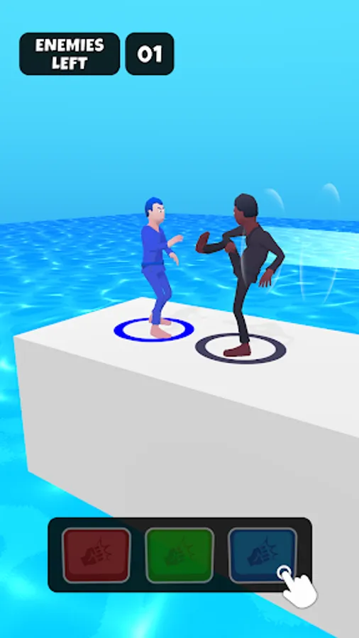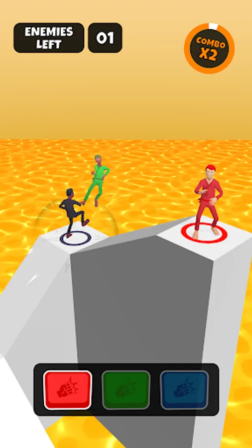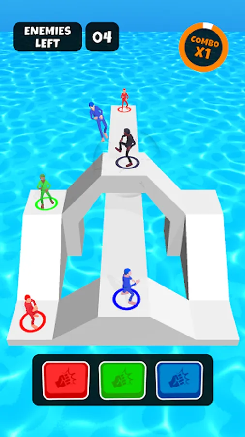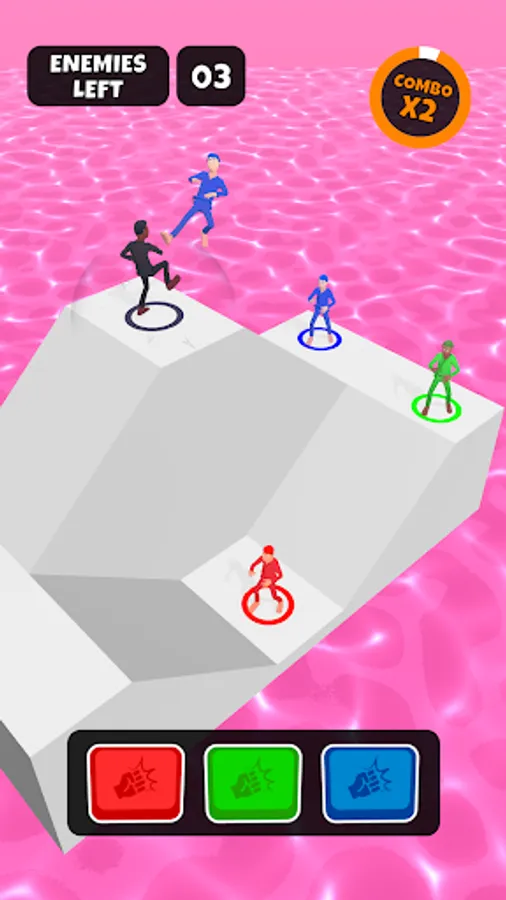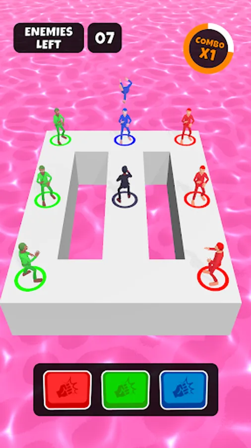 Choose the enemy you want to attack by taping the right color at the right time! Master the arena eliminating all your foes!