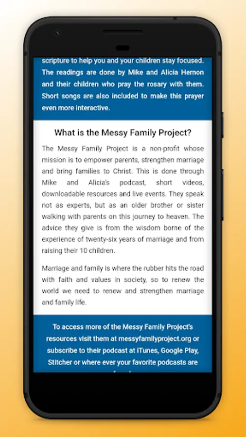 Join Mike and Alicia Hernon from the Messy Family Project as they pray the rosary with their family. This scriptural rosary will make it easy for you and your children to understand each mystery and to pray it. Audio is stored on your device so you can listen without an internet connection.