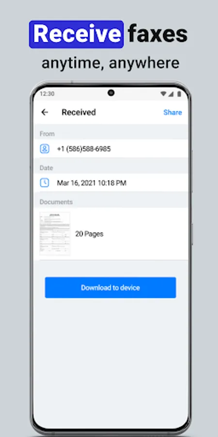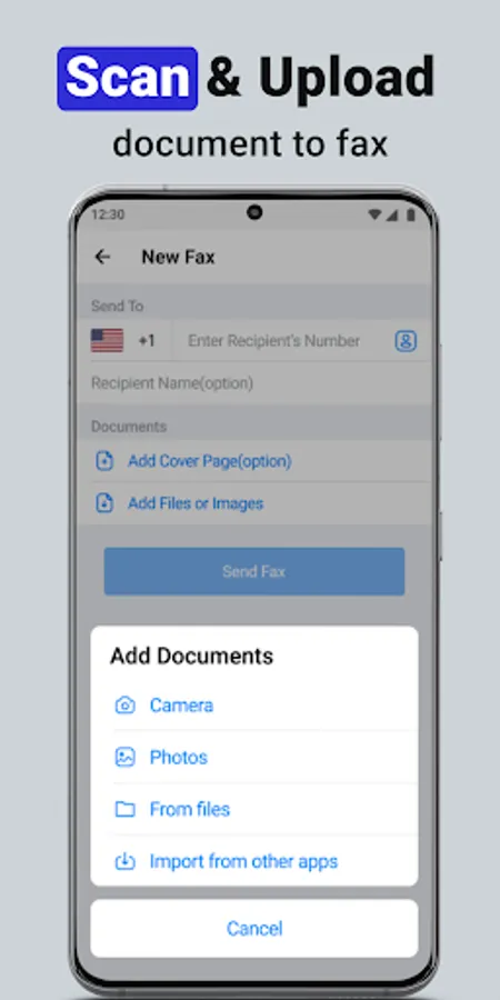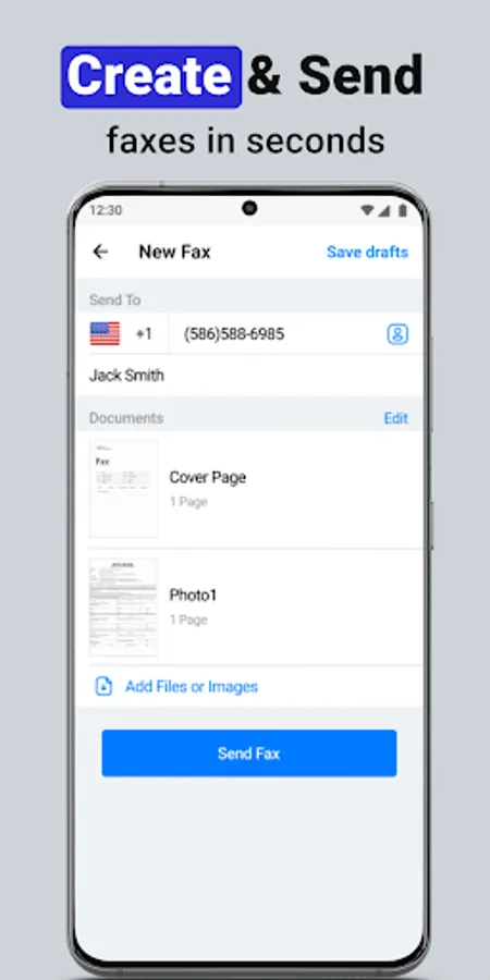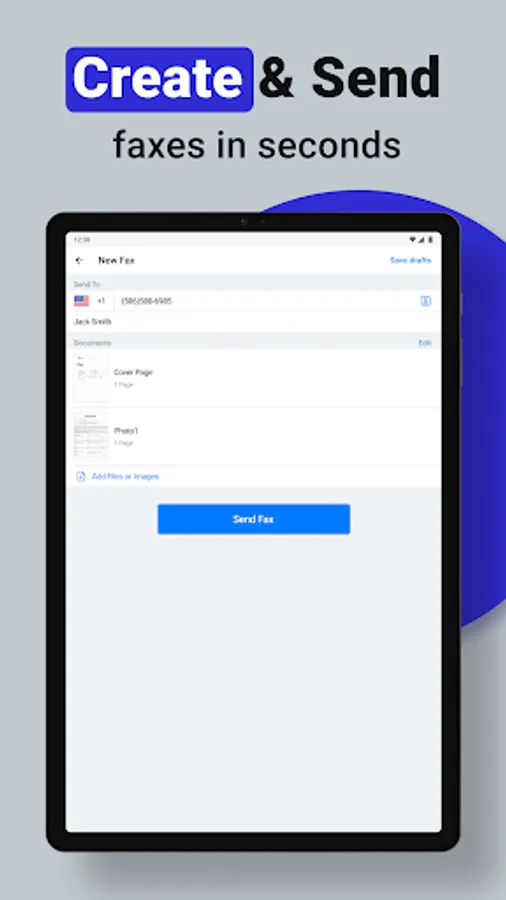 • Create faxes from your Camera Roll, Dropbox, or anywhere else