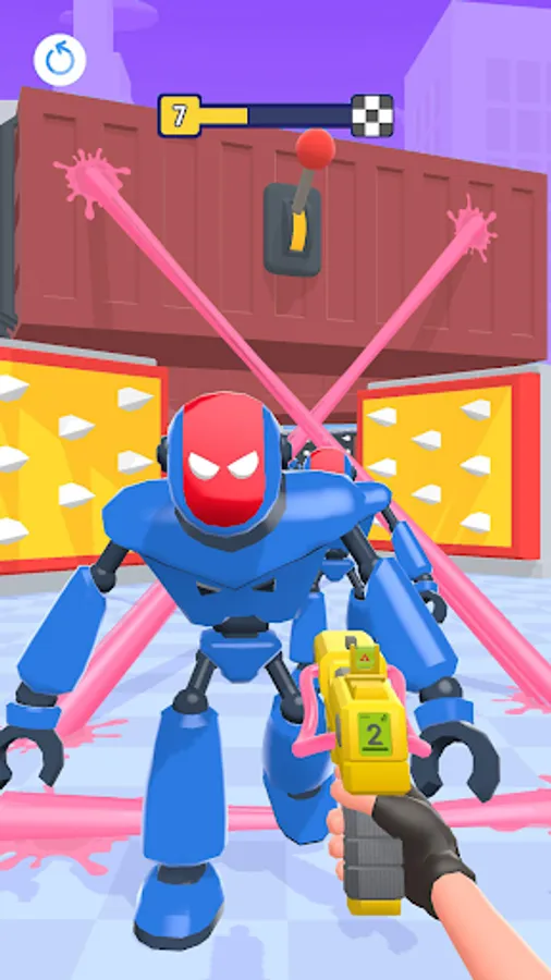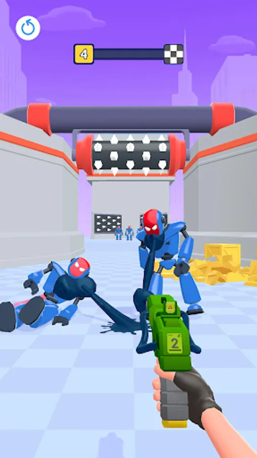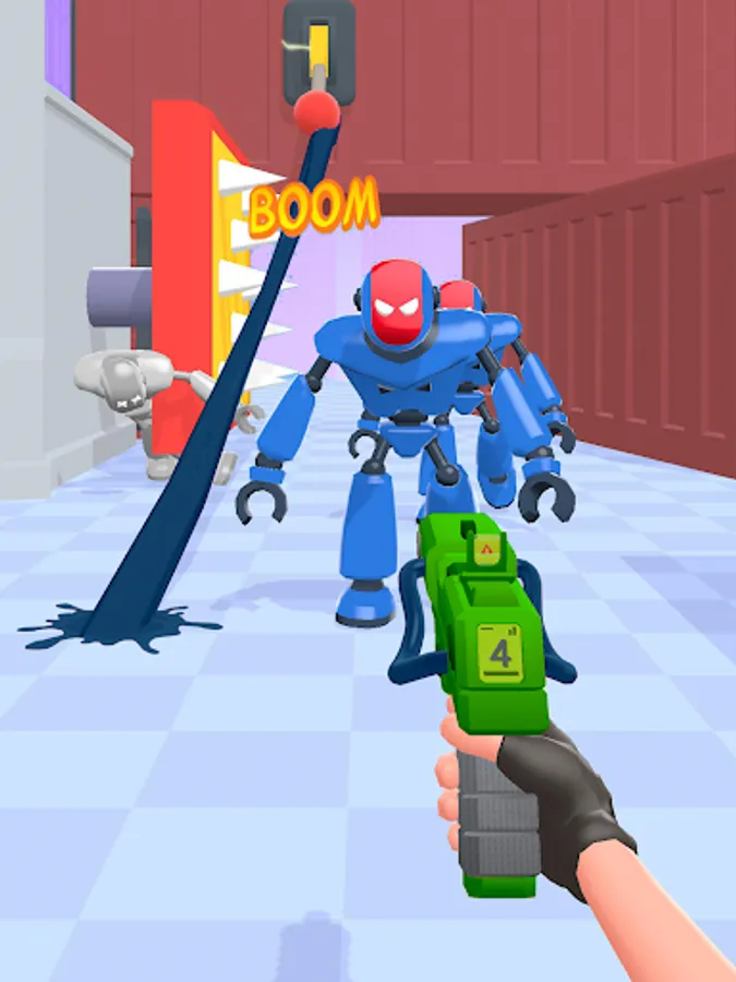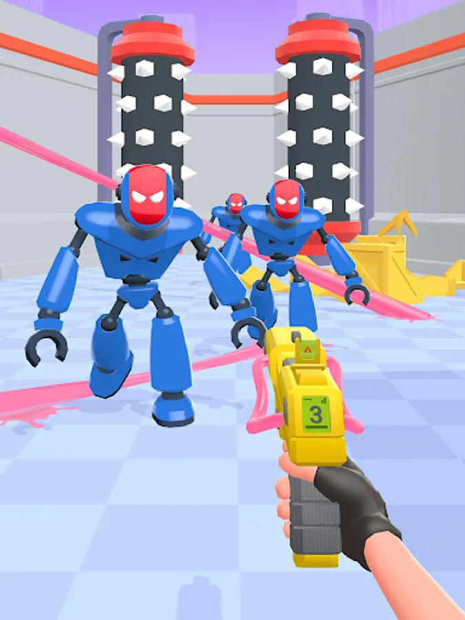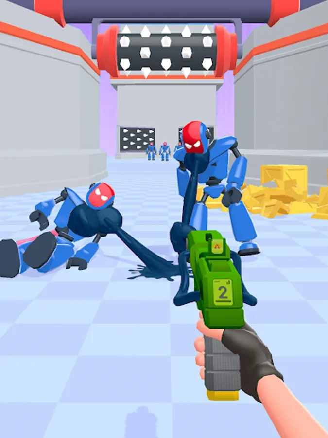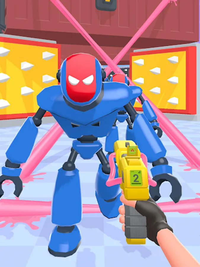 Unlike in other gun shooting games, you’ll get the most powerful weapons of all galaxies! Take a blaster that shoots gum or a pistol with ropes instead of bullets in our top war battle game. These futuristic shooting guns will help you tie the robots to hurdles and tear them all down!