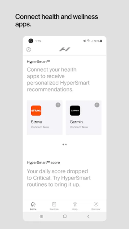 HyperSmart™ syncs your physical and digital activity to create an experience entirely customized to you. It combines advice from our team of scientific advisors with information from your daily activity and other health and fitness data, including Strava and Garmin, to create personalized recommendations that are fully in tune with your body’s needs.