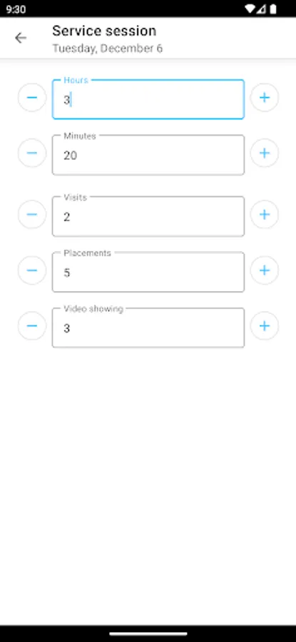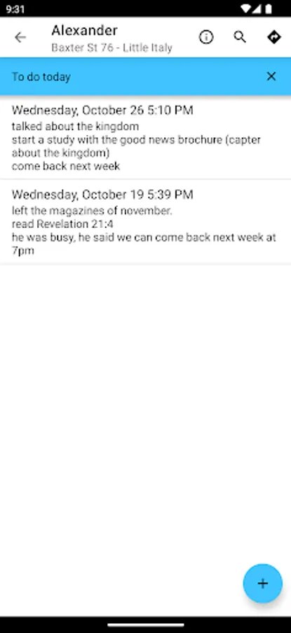 • Service sessions management: you can quickly open and modify the current day report to add visits/magazines/tracts/...