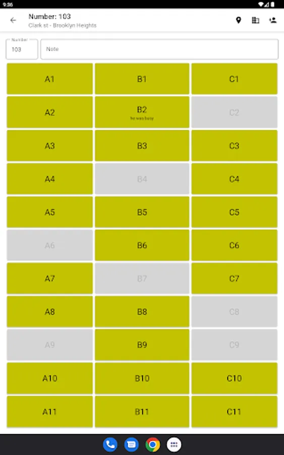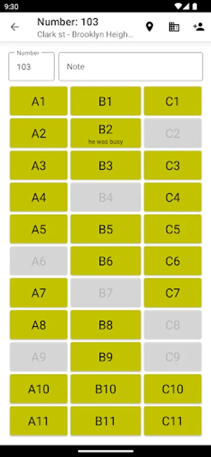 • Apartment block management with doorbells coordinates. set the number of rows and columns. keep pressed on a cell to change its state (absent/found). double tap on a cell to insert a note