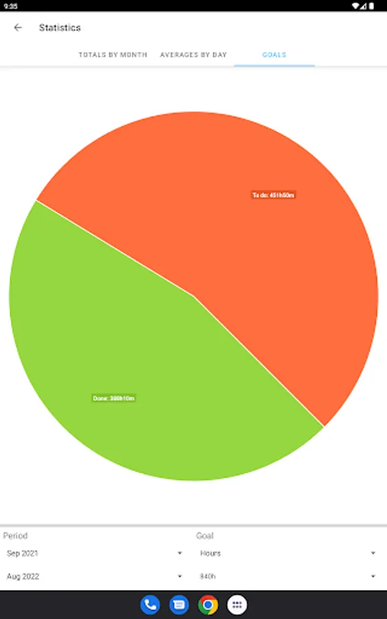 • Set goals (of hours, return visits, placements, ...) and check if you're reaching them with a pie chart