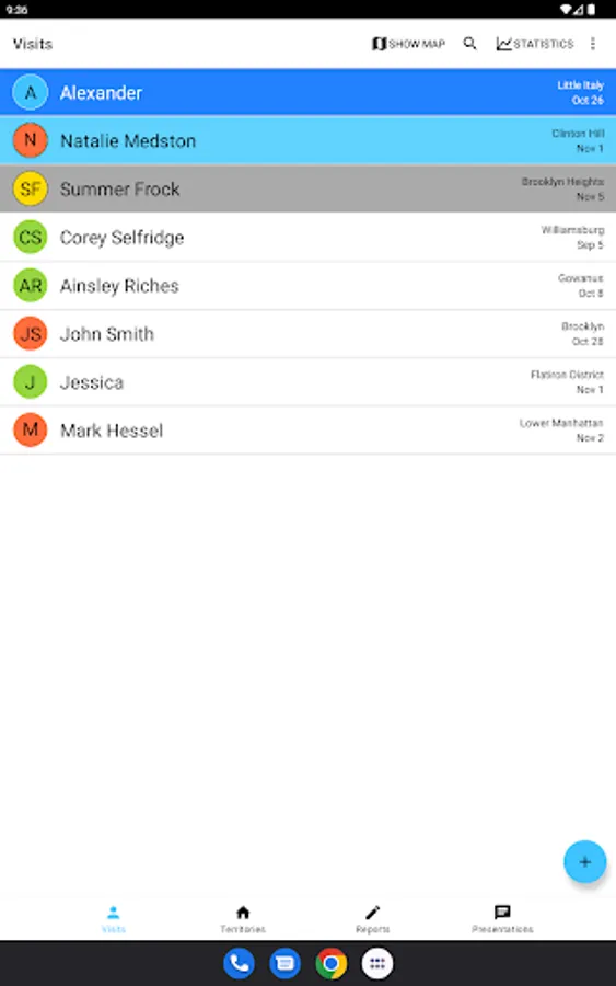• Highlight the visits you want to do today (or in another date) in the list and on the map