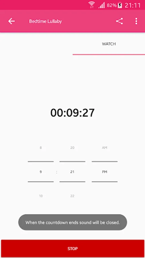White Noise Baby app has Auto Shutdown Timer. You can set time or minute and application will be closed when the time is over.