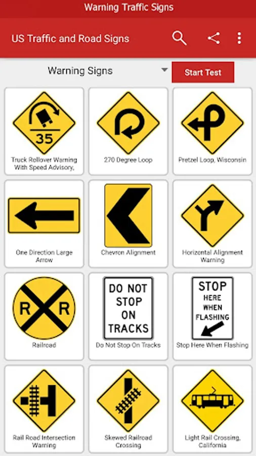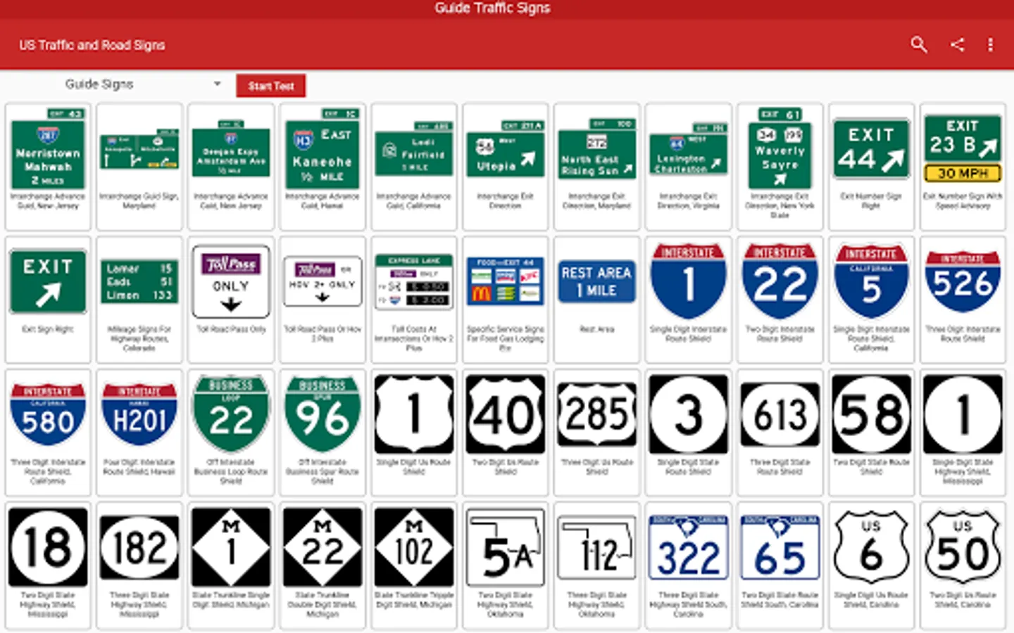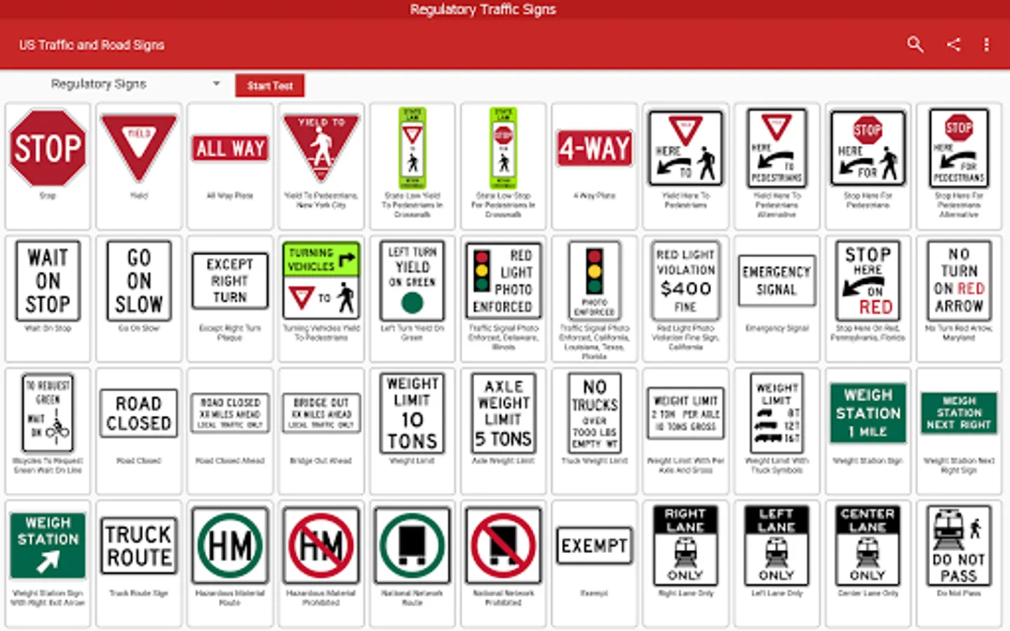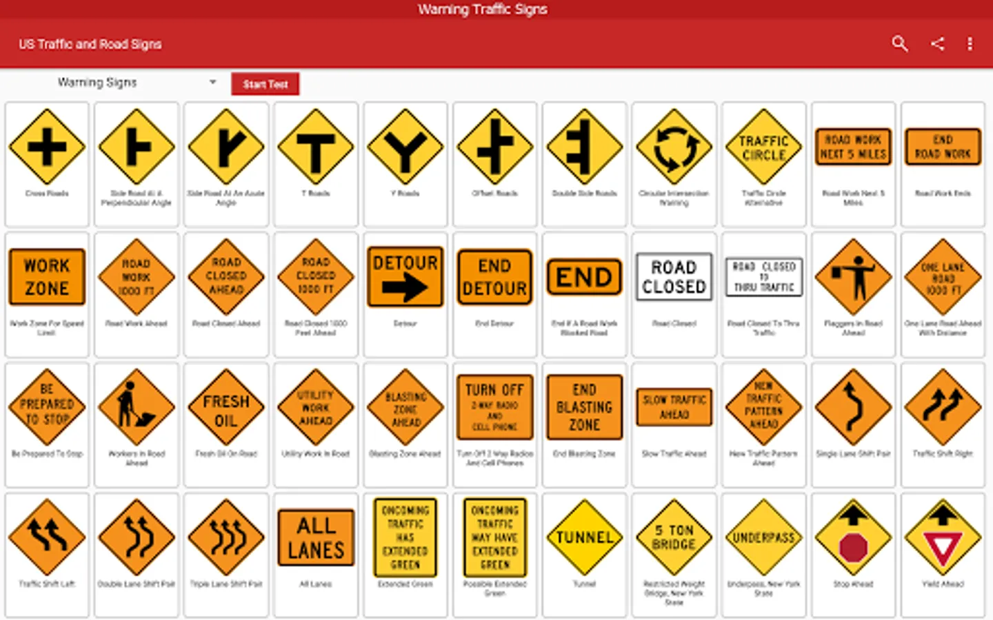 This app includes all the latest traffic/road signs (of the year 2014, 2015, 2016, 2017,2018,2019,2020,2021,2022) which you need to know to be a better driver. If you already have a license, still, you want to go through these signs to ensure that you know every sign. If you planning to give driver's knowledge test or actual drive test in near future then this app will help you a lot because you will find numerous questions on signs in your driving or DMV knowledge test. Endless practice tests will help you to familiarize yourself with the actual test system.